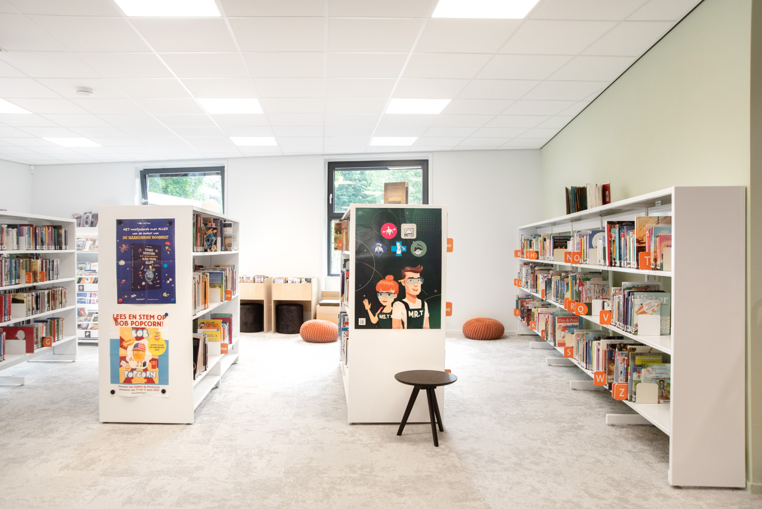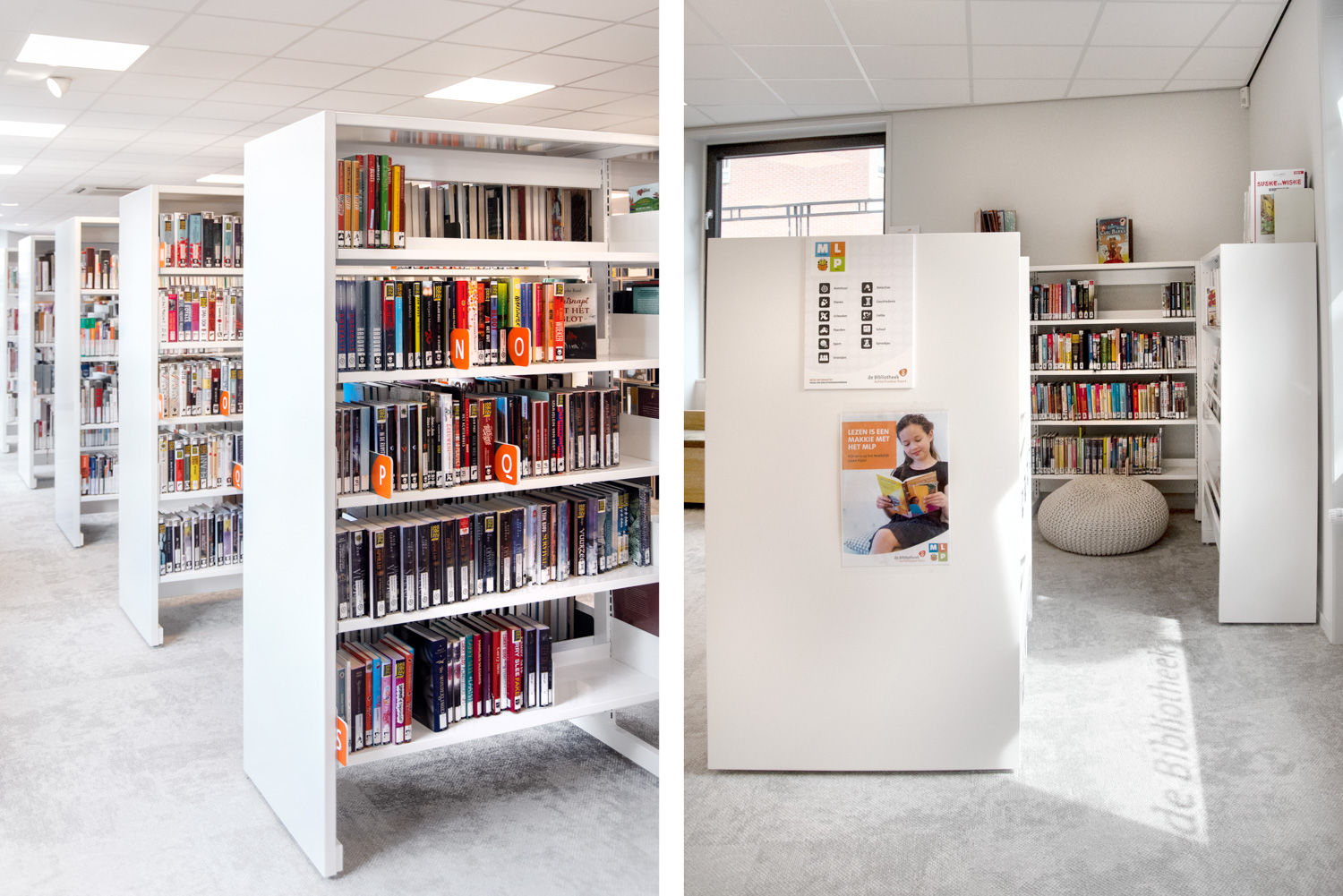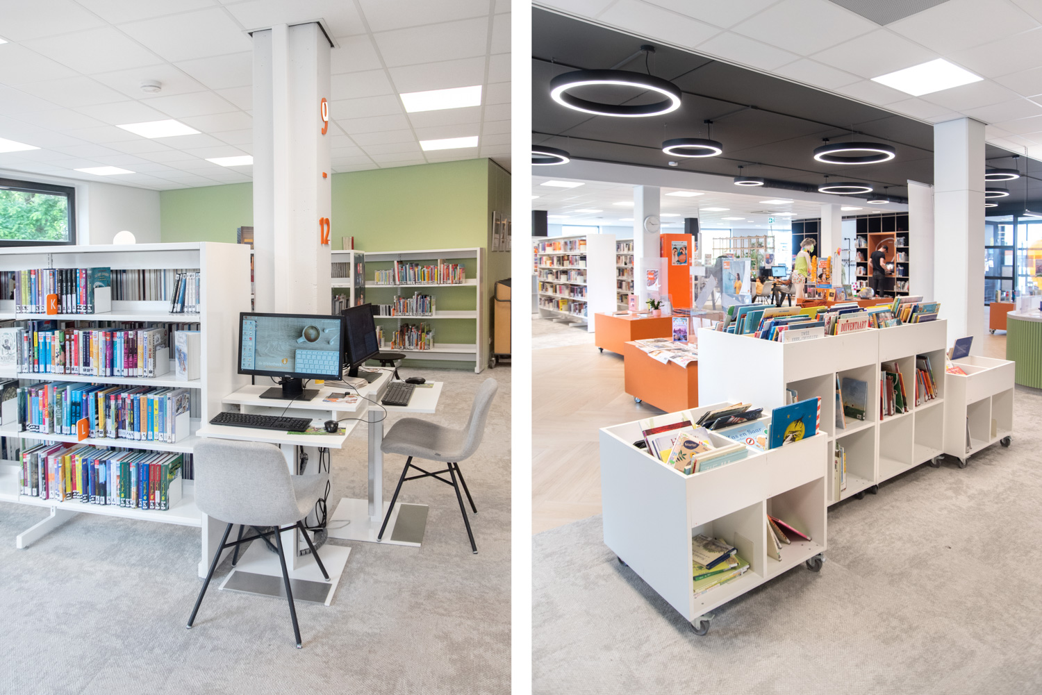 Teamleider Mieke De Vette: “We wilden een uitnodigende en open sfeer creëren: ‘we zijn er voor iedereen, kom binnen!’. Hoewel we wat gekrompen zijn ten opzichte van de oude bib en minder zitgelegenheid kunnen aanbieden, zijn de lezers heel positief over kleur, inrichting en meubilair.“