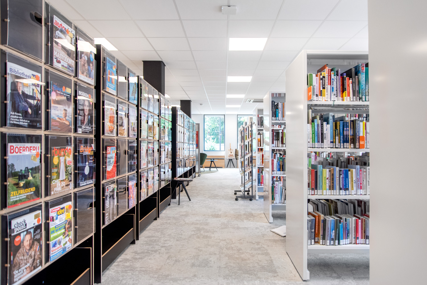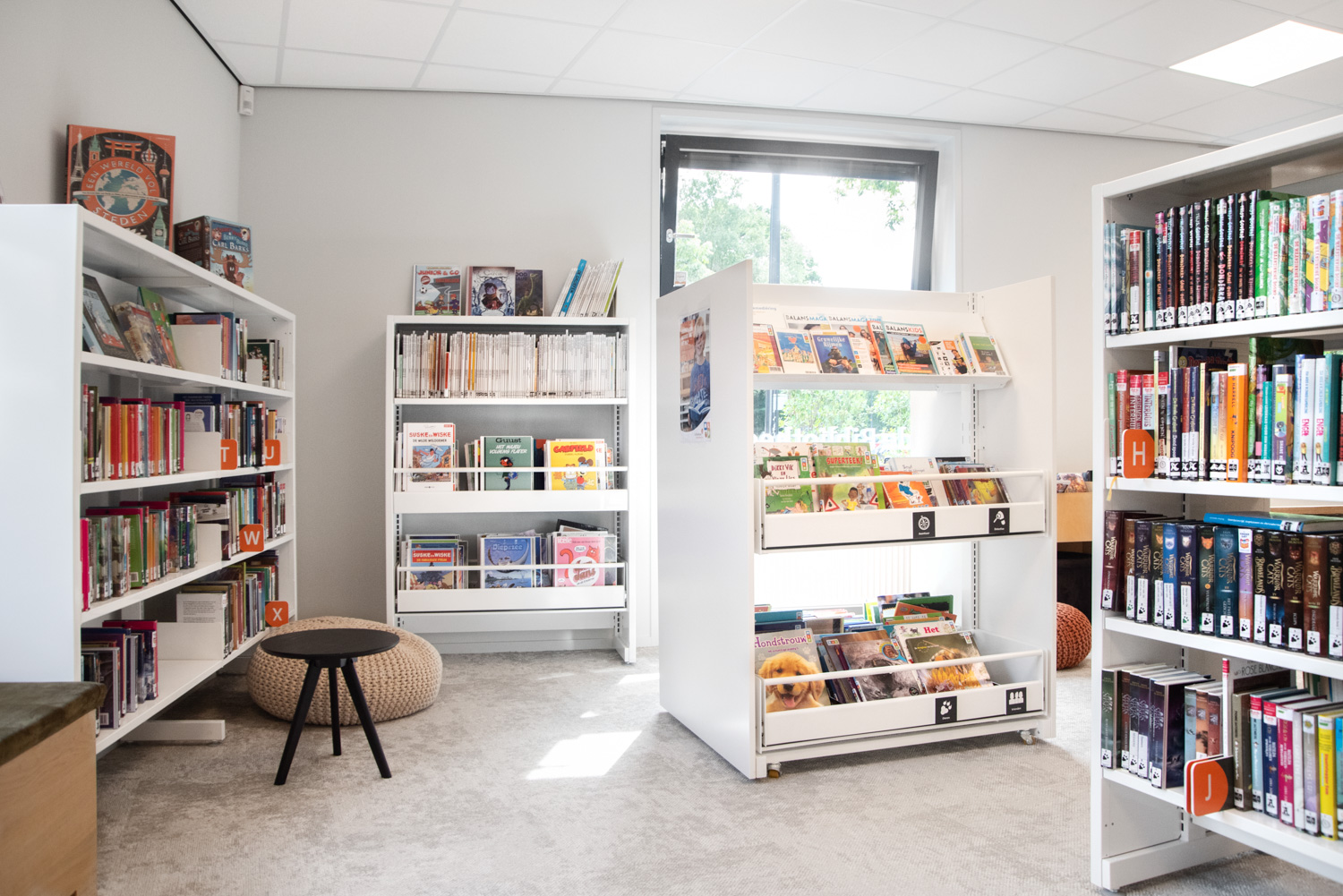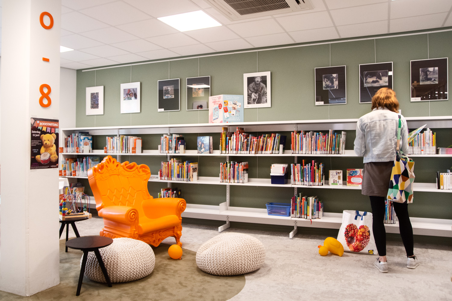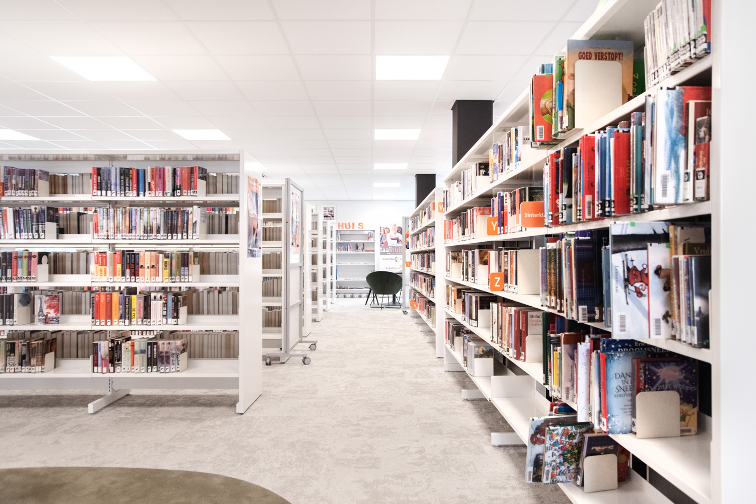 Teamleider Mieke De Vette: “We wilden een uitnodigende en open sfeer creëren: ‘we zijn er voor iedereen, kom binnen!’. Hoewel we wat gekrompen zijn ten opzichte van de oude bib en minder zitgelegenheid kunnen aanbieden, zijn de lezers heel positief over kleur, inrichting en meubilair.“