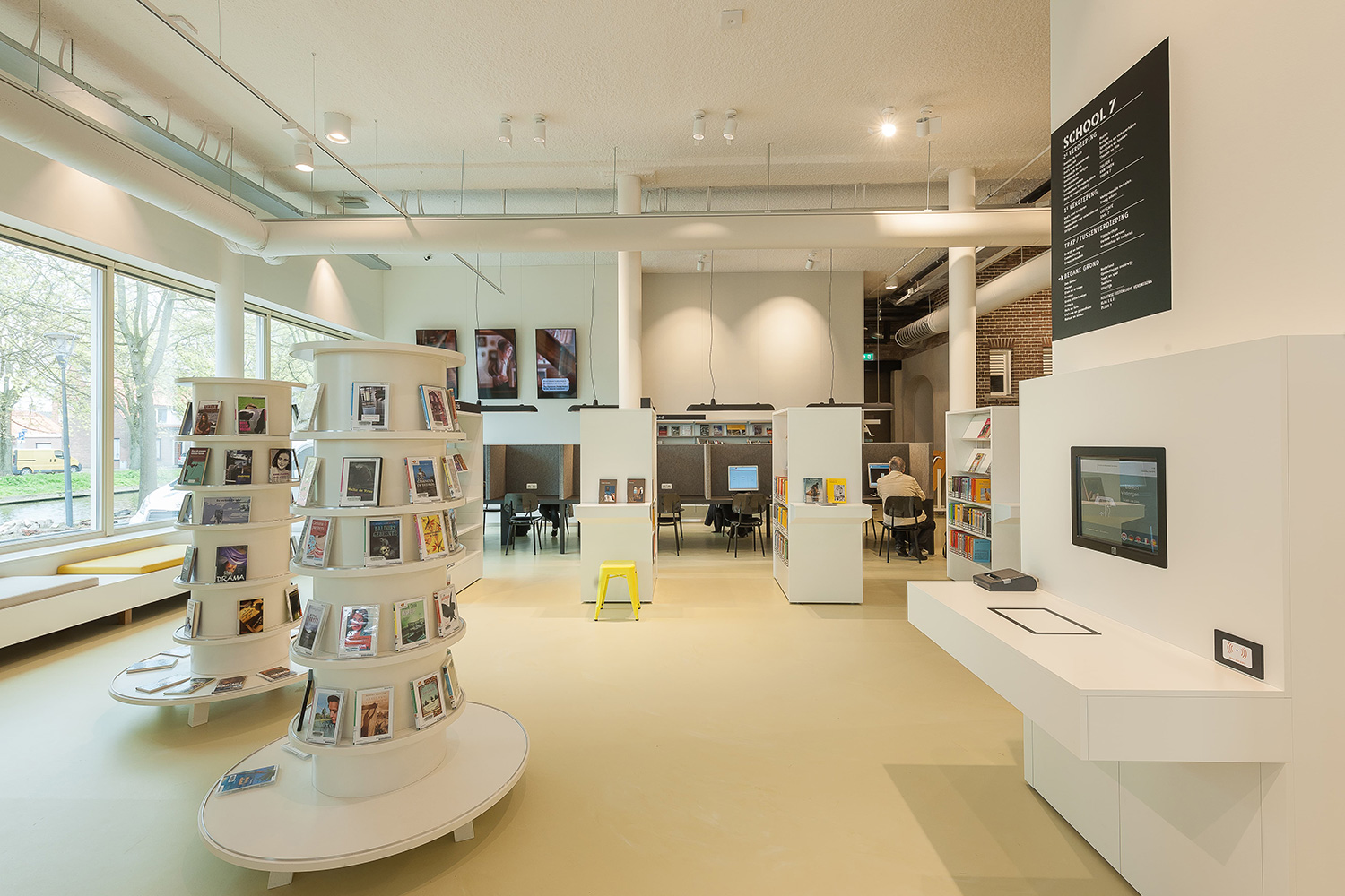 De nieuwe bibliotheek van Den Helder bevind zich in een 100 jaar oud gebouw dat oorspronkelijk werd gebruikt als school. De nieuwe bibliotheek is gebouwd rond het bestaande gebouw. Het resultaat is een mix tussen authentieke en hedendaagse elementen. Evelien van Veen, van Veen Architects BV uit Rotterdam was verantwoordelijk voor het ontwerp van het gebouw, Marcel van der Veer van MARS Interieurontwerpers heeft het interieur uitgewerkt.