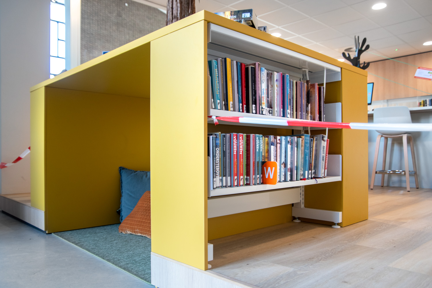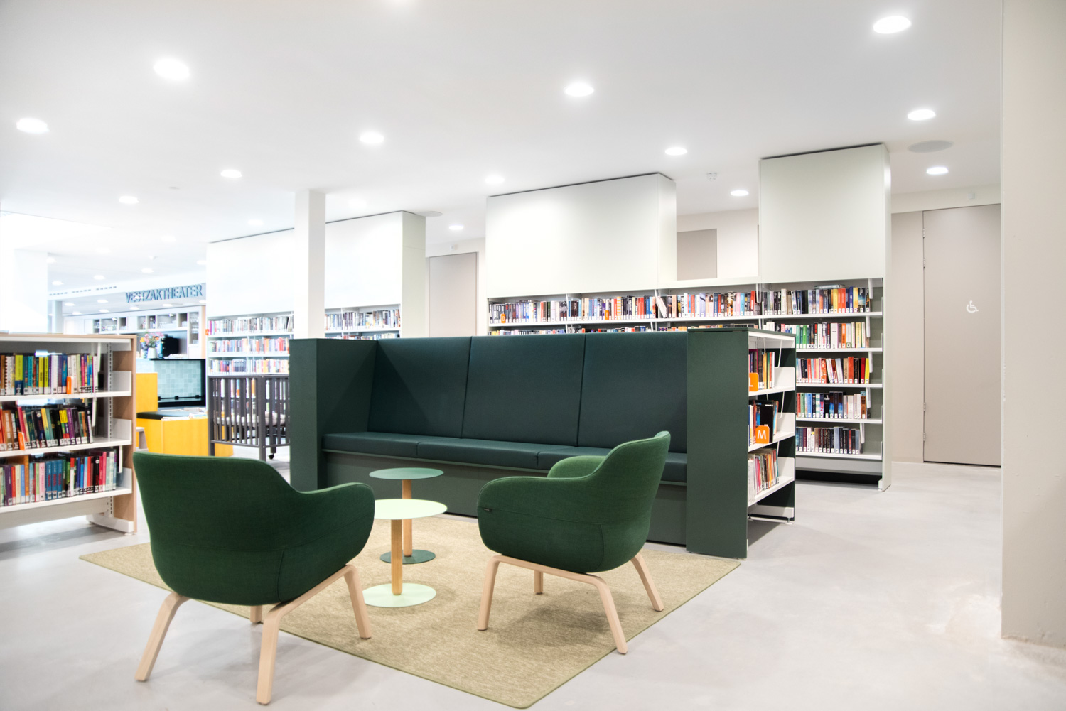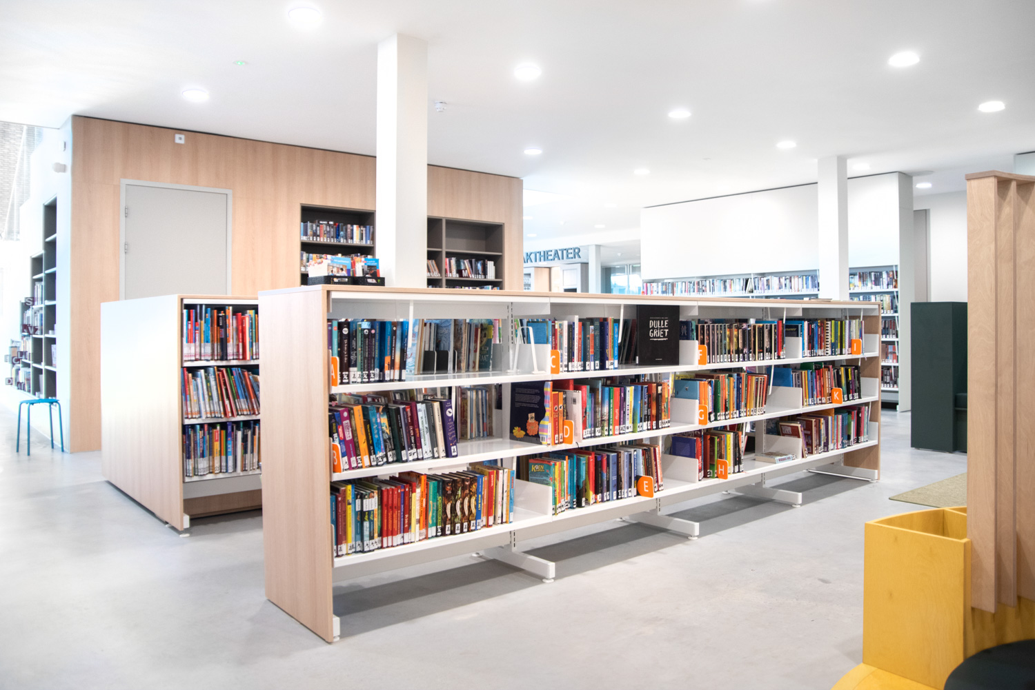 De inrichting ontworpen en uitgevoerd door Puur Sang en Schulz Benelux, faciliteert de vele activiteiten die in de bib plaatsvinden zoals cursussen, computercafés, lezingen, kinderactiviteiten.