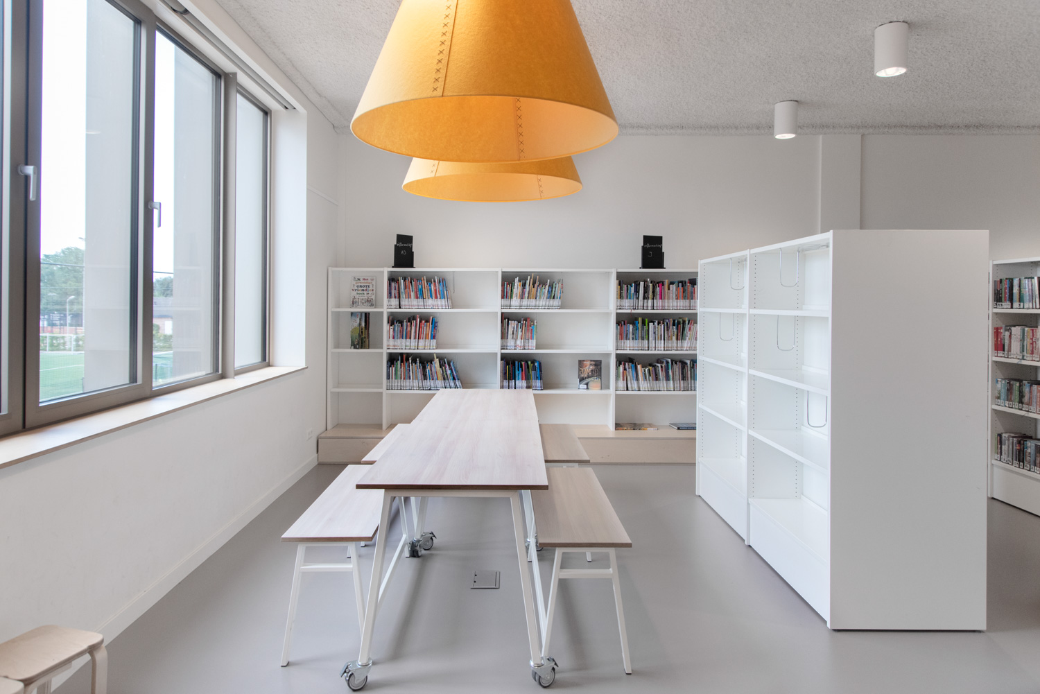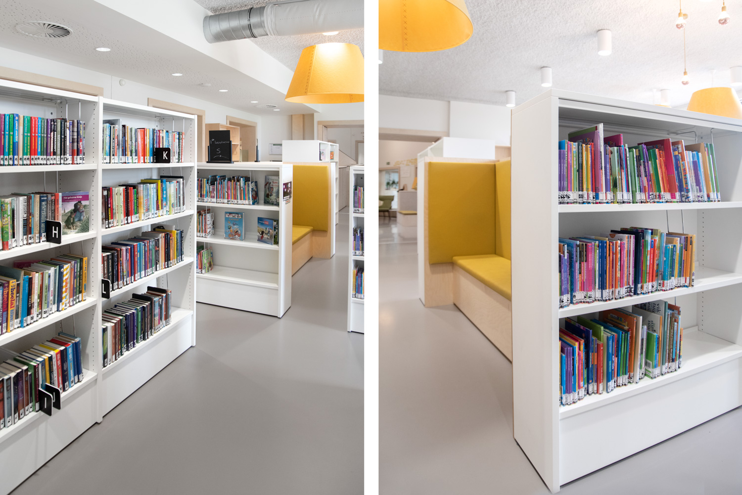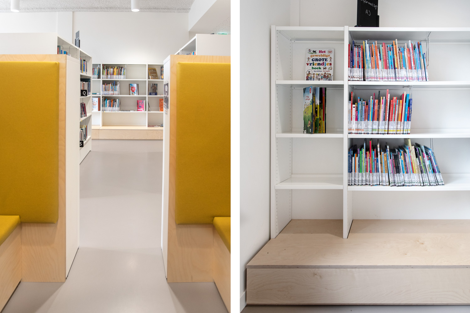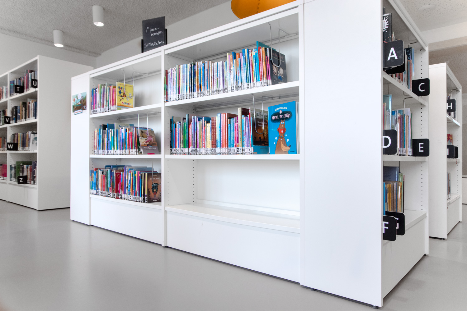 Bij de inrichting is rekening gehouden met de samenwerkingspartners (school, opvang), zodat er optimaal gebruik kan worden gemaakt van de ruimten. De collectie wordt zo klantvriendelijke mogelijk aangeboden in bibliotheekrekken op sokkels.