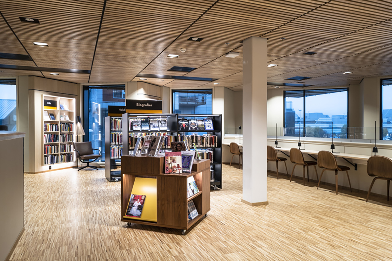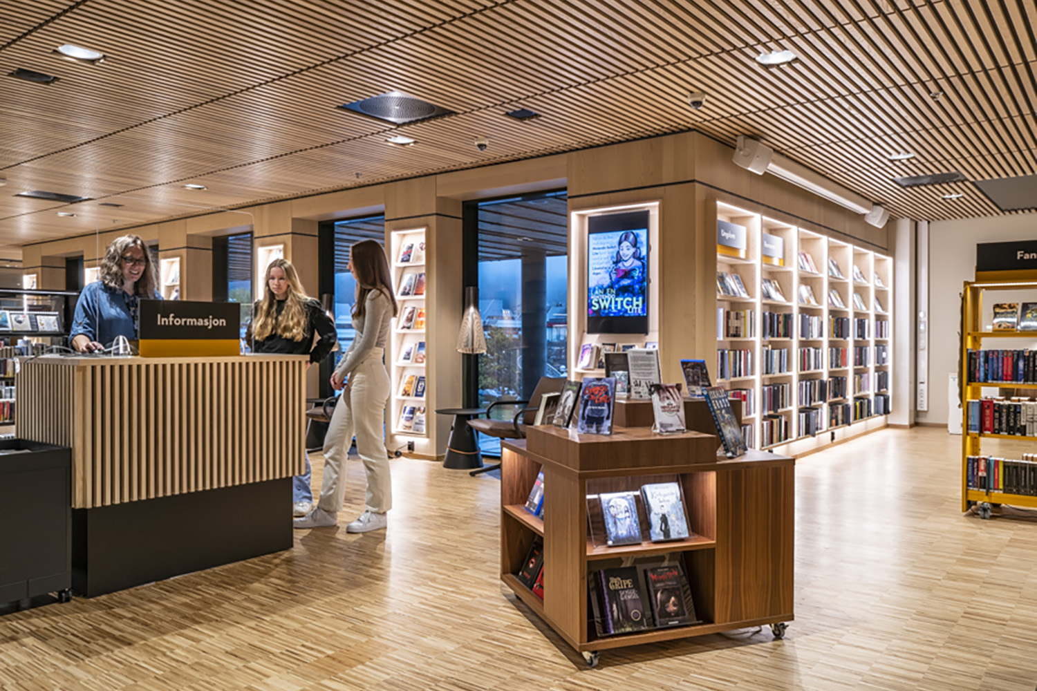 Producten die in de Openbare bibliotheek Åsane, Noorwegen gebruikt worden