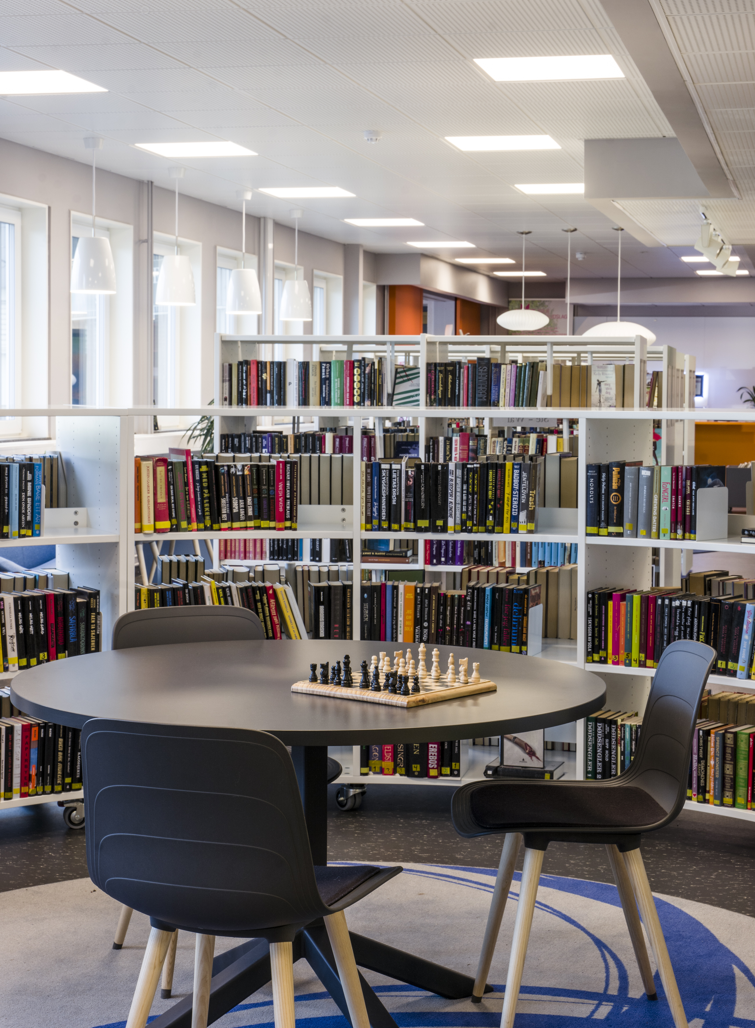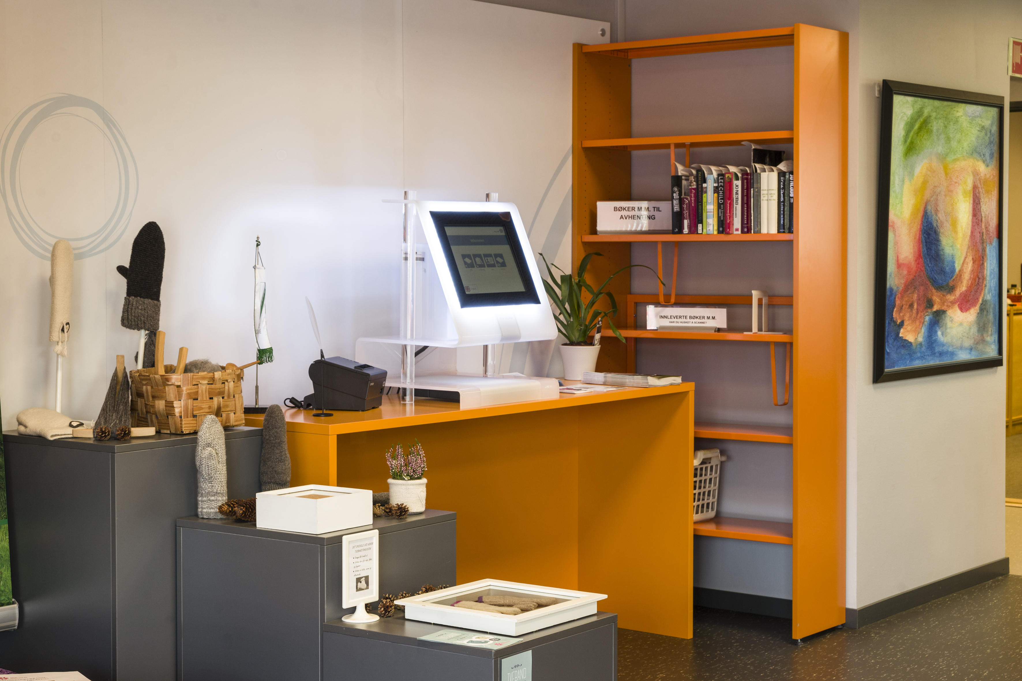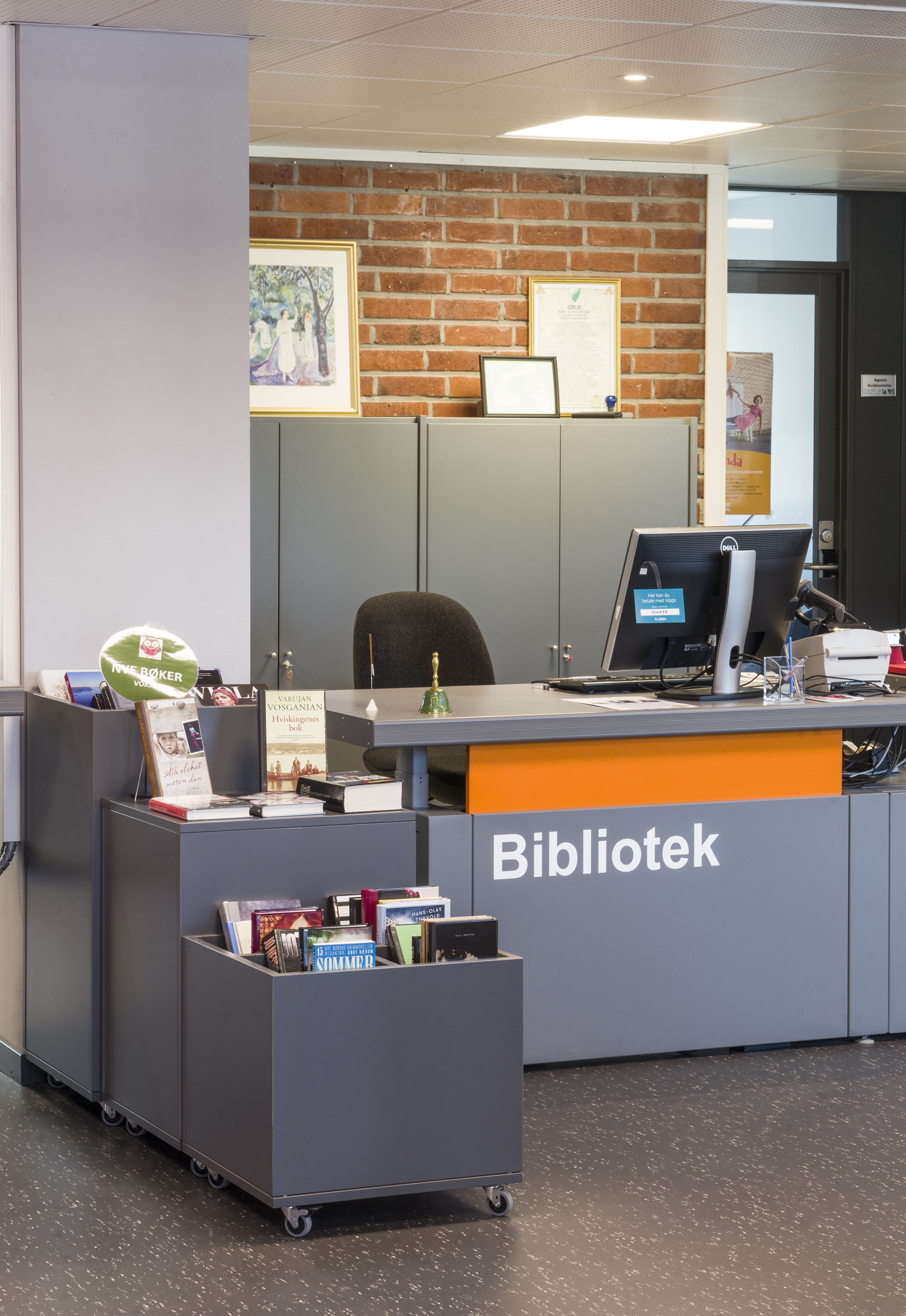 Producten die in de Openbare bibliotheek Grue, Noorwegen gebruikt worden