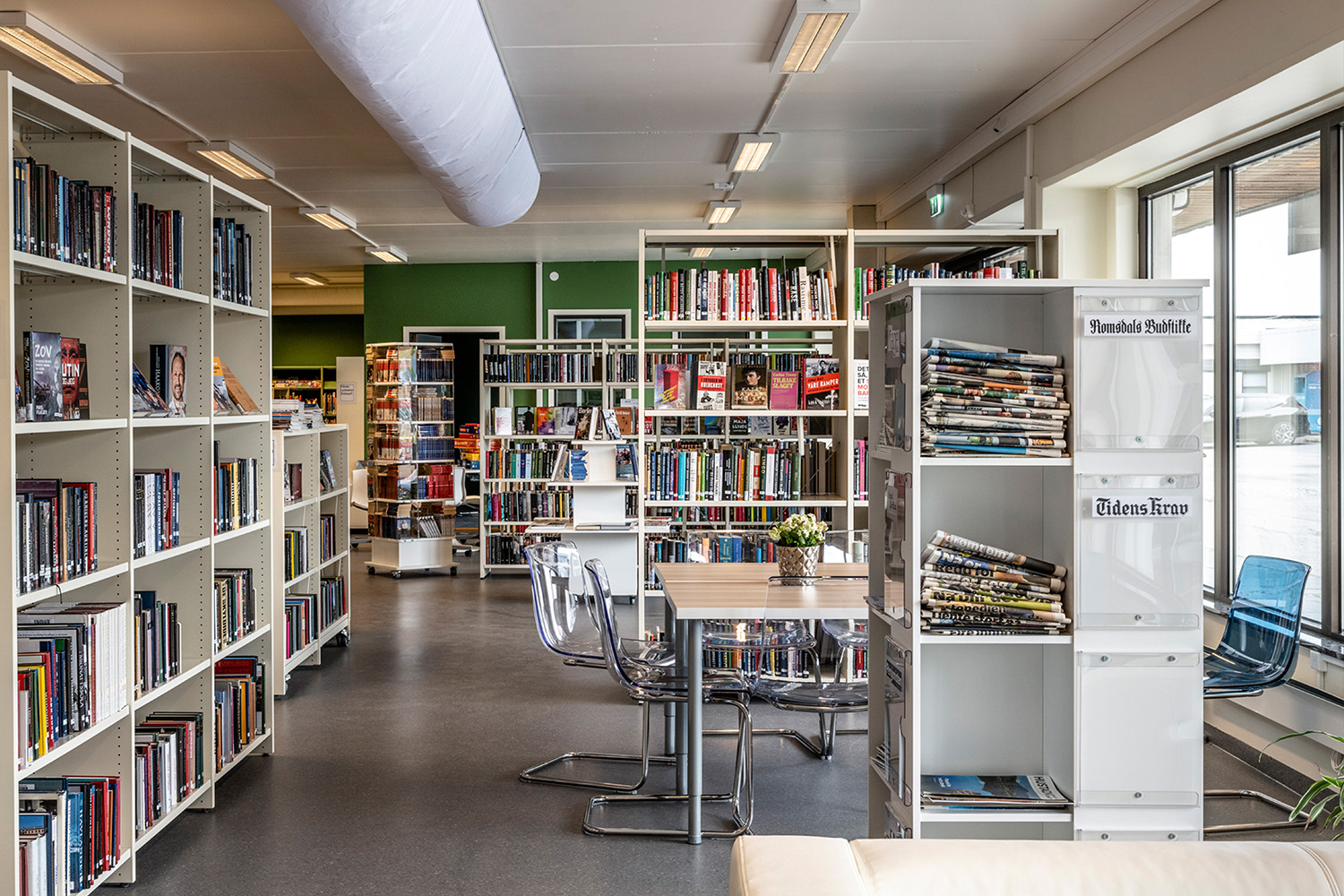 Producten die in de Hustadvika Bibliotheek, Eide, Noorwegen gebruikt worden