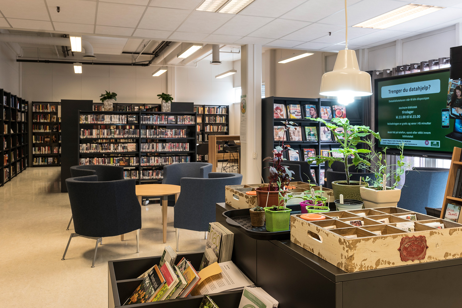 Producten die in de Openbare bibliotheek Kløfta, Noorwegen gebruikt worden