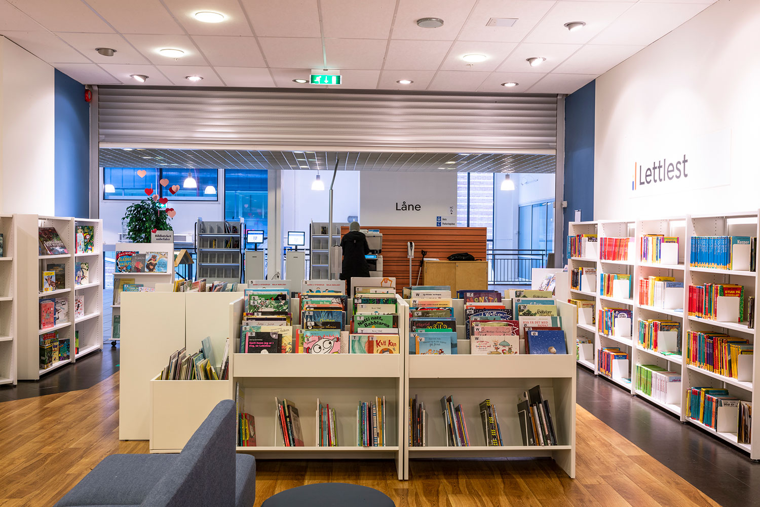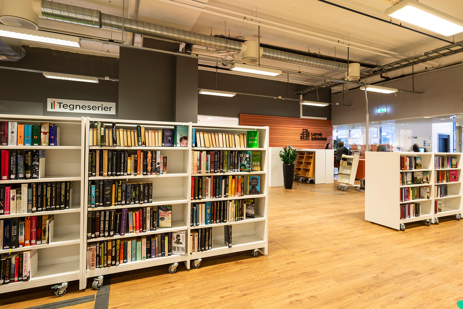 Producten die in de Openbare Bibliotheek Larvik, Noorwegen gebruikt worden