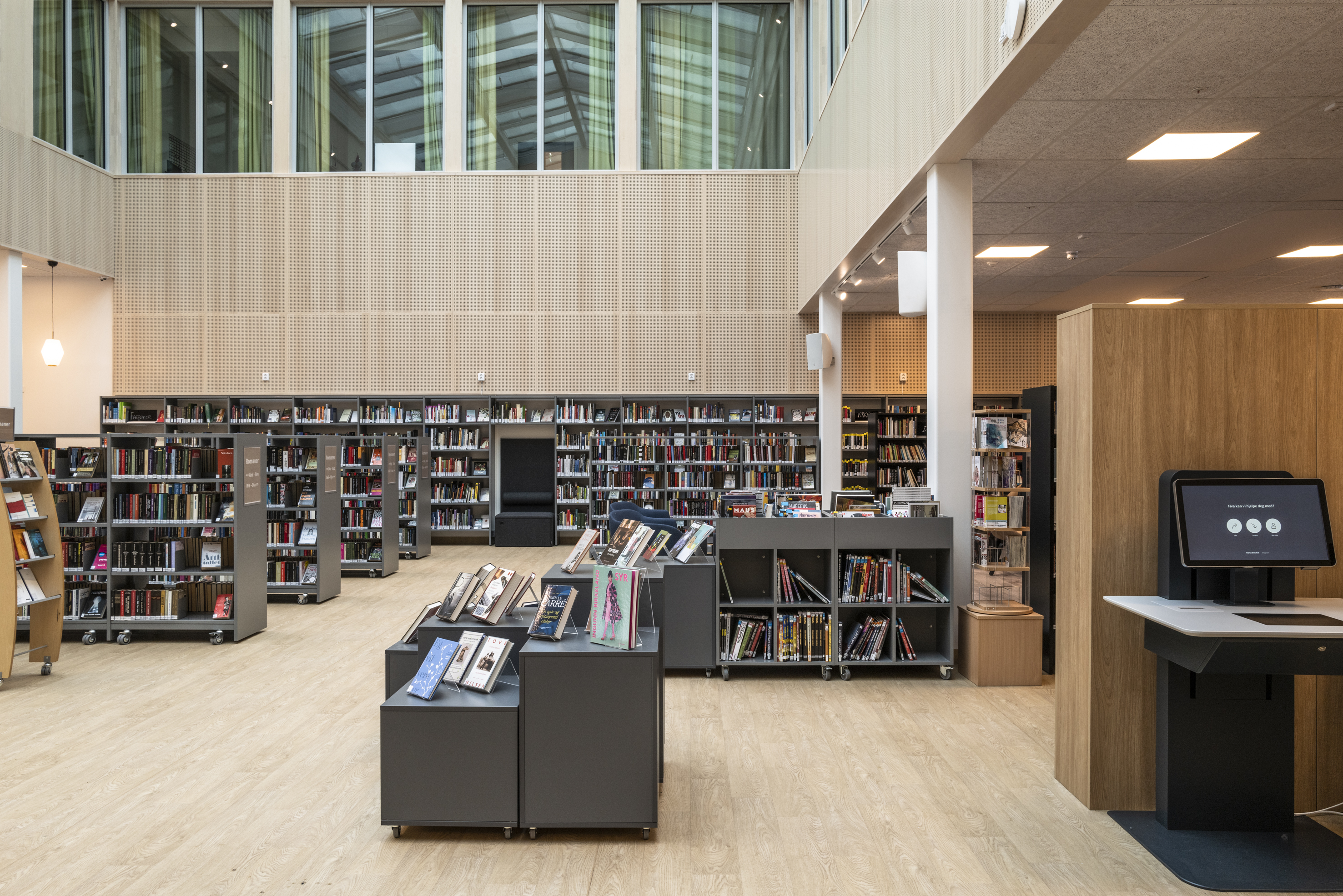 Het Noorse BS Eurobib mocht onder meer de rekkensystemen, de balies, het zitmeubilair en de tafels leveren voor de nieuwe bibliotheek.