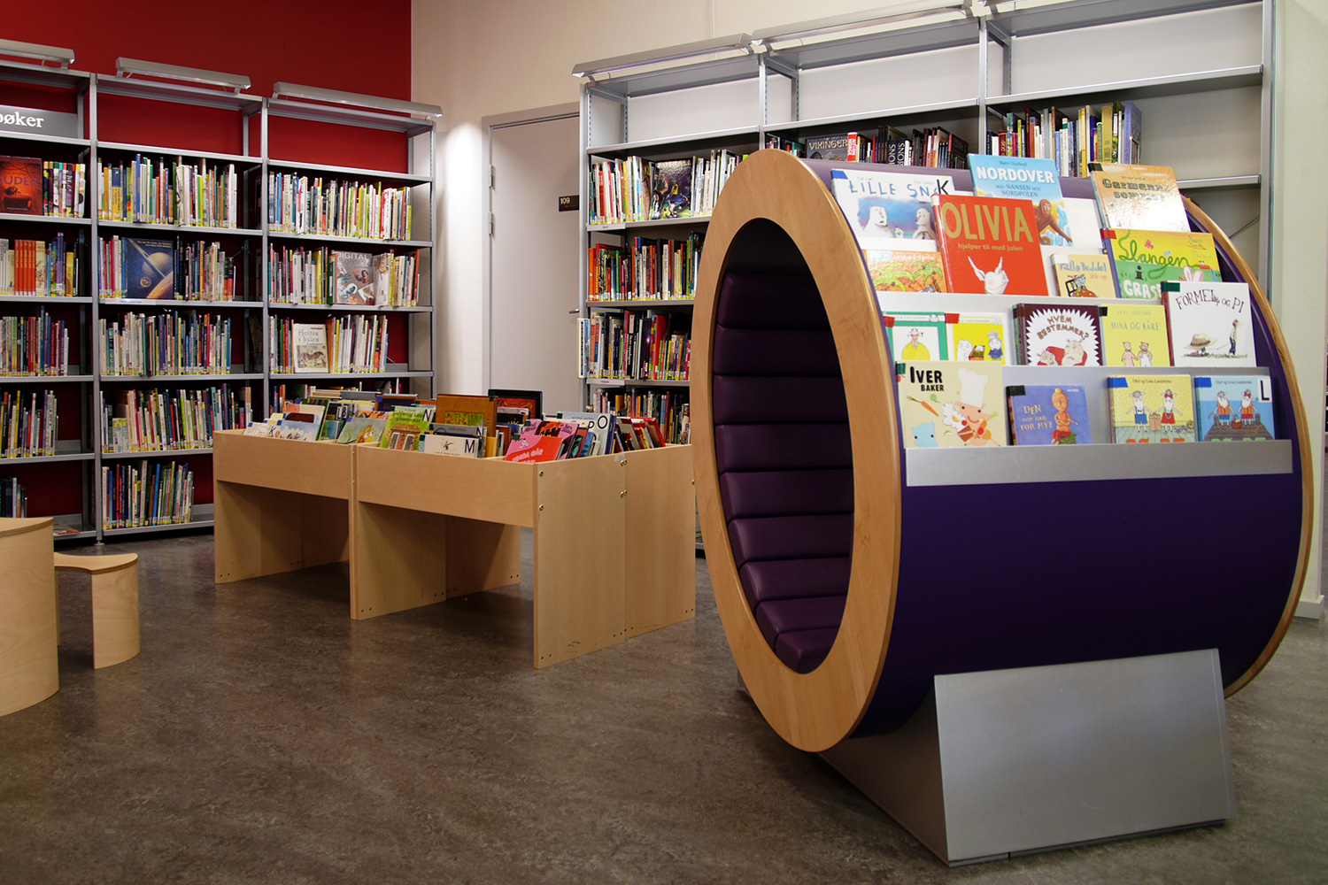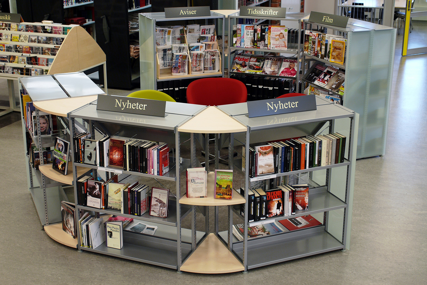 Producten die in de Openbare bibliotheek Raufoss, Noorwegen gebruikt worden