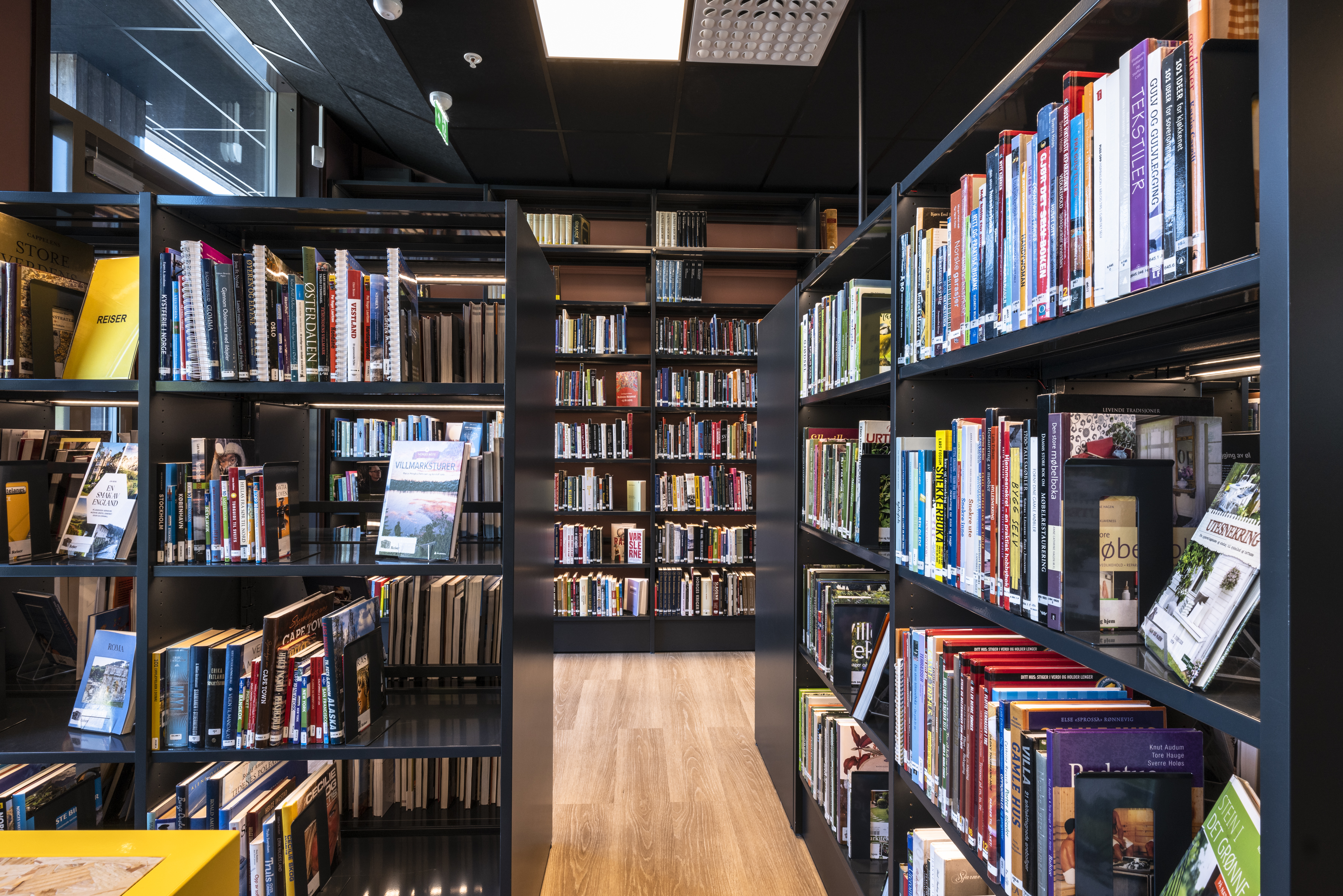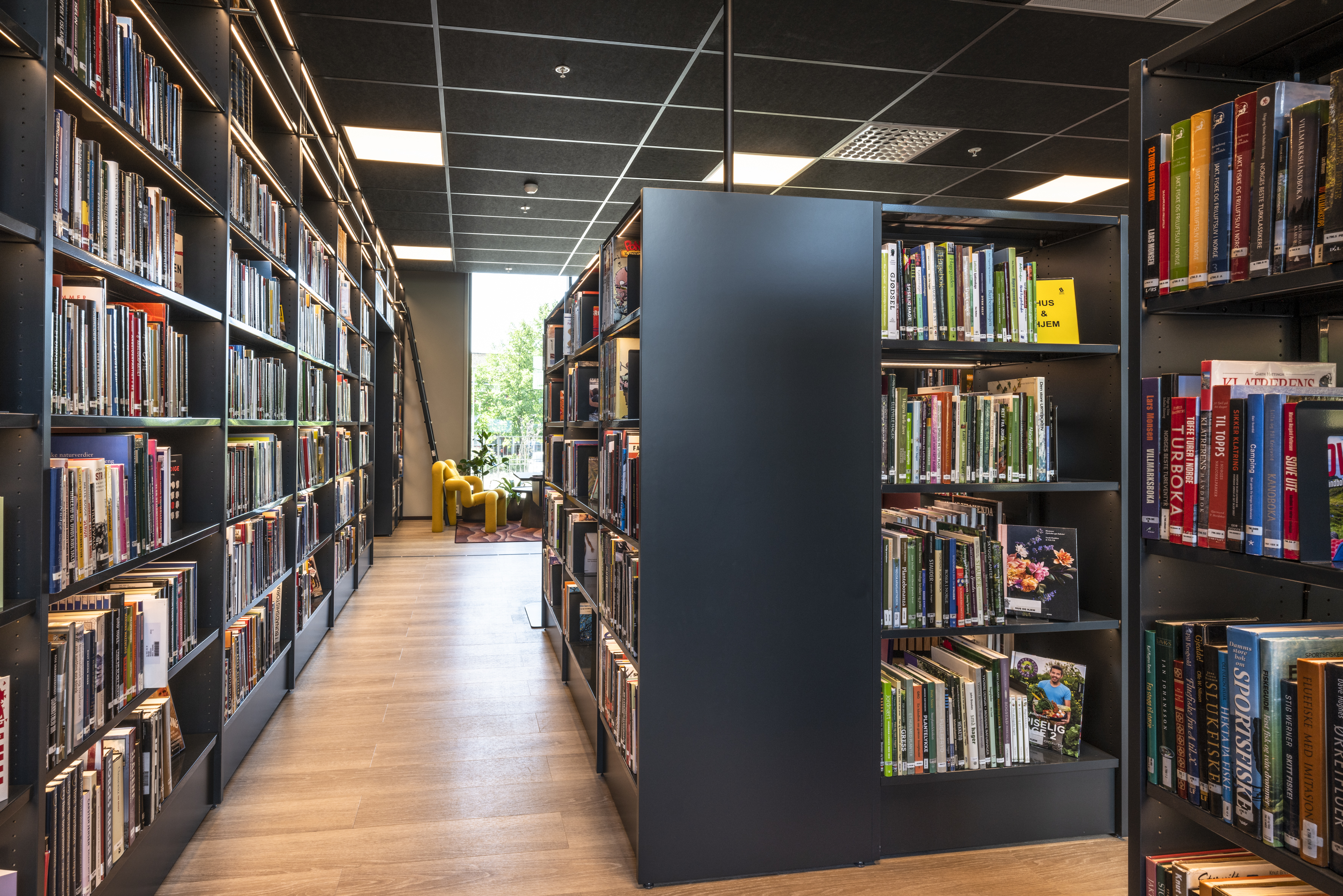 Veertig jaar lang bevond de bibliotheek van Skiptvet zich op de kelderverdieping van een school. Vandaag kunnen bibliotheekbezoekers terecht in het schitterende, nieuwe en moderne Torggården-complex. Langs de trap die de twee verdiepingen van de bib met elkaar verbindt, zweven speelse vogelkooien als luchters. Ruimte, licht en warme kleuren kregen een centrale plaats in de inrichting, om van de bib een uitnodigende ontmoetingsplek te maken. Tegelijk heerst in de bib vooral een huiselijke sfeer, dankzij het gebruik van biofiel design. Zo worden bezoekers in de bib omringd door tal van planten in uiteenlopende formaten.