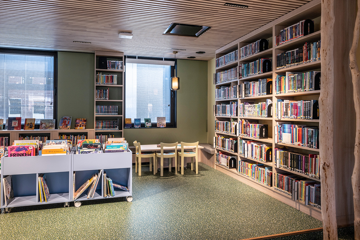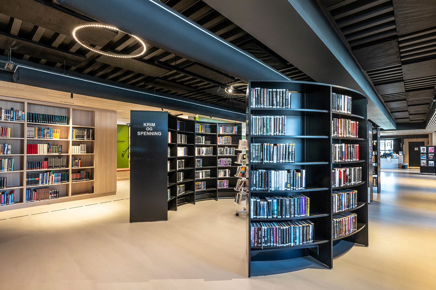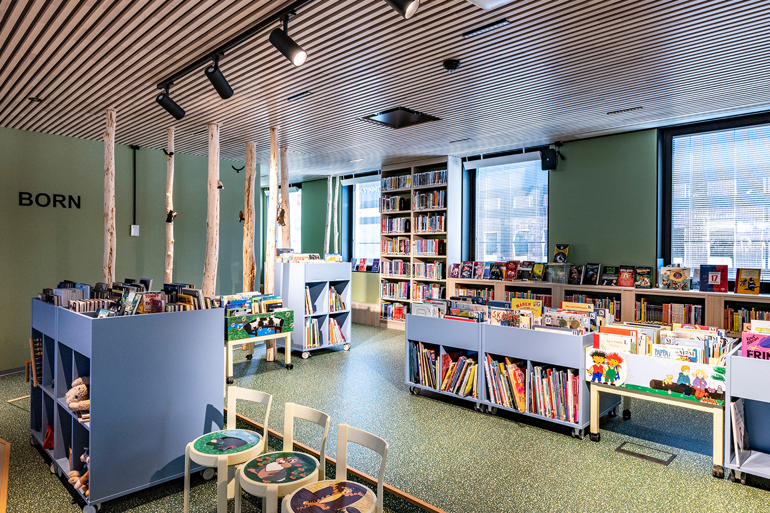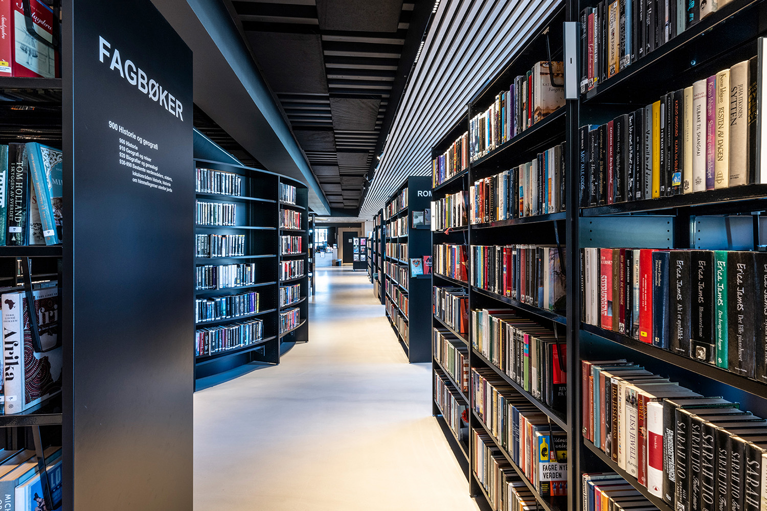 De zwarte legborden in het midden van de ruimte werden geleverd door BS Eurobib, maar om het hoge plafond te accentueren werd gekozen voor op maat ontworpen lichtgekleurde legborden langs de muren. De nieuwe bibliotheek is een populaire plek geworden om vrienden te ontmoeten, spelletjes te spelen, de krant te lezen, te studeren en nog veel meer. Bovendien heeft de bibliotheek haar openingstijden aangepast, waardoor het vanaf heden ook mogelijk is om in het weekend langs te komen.