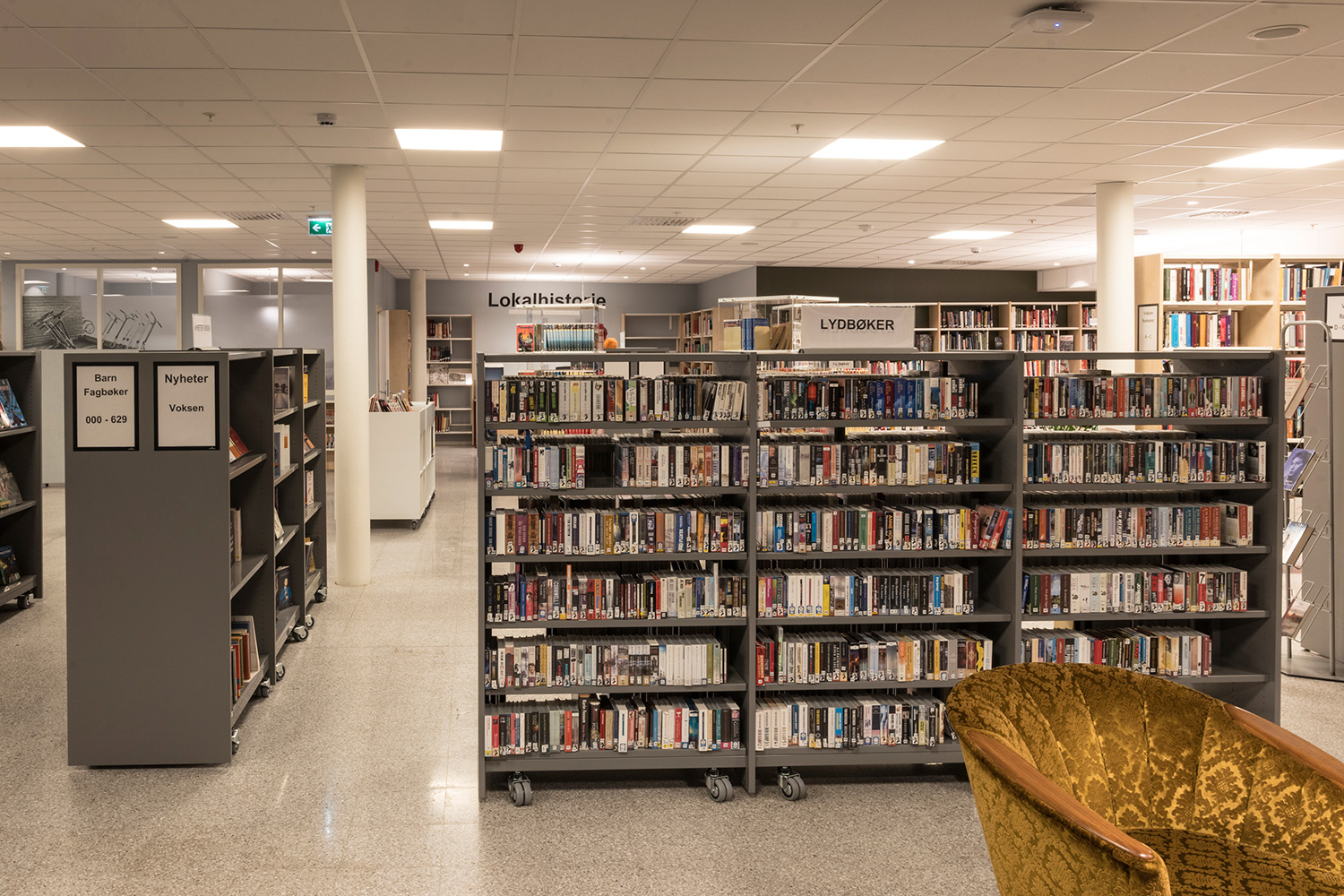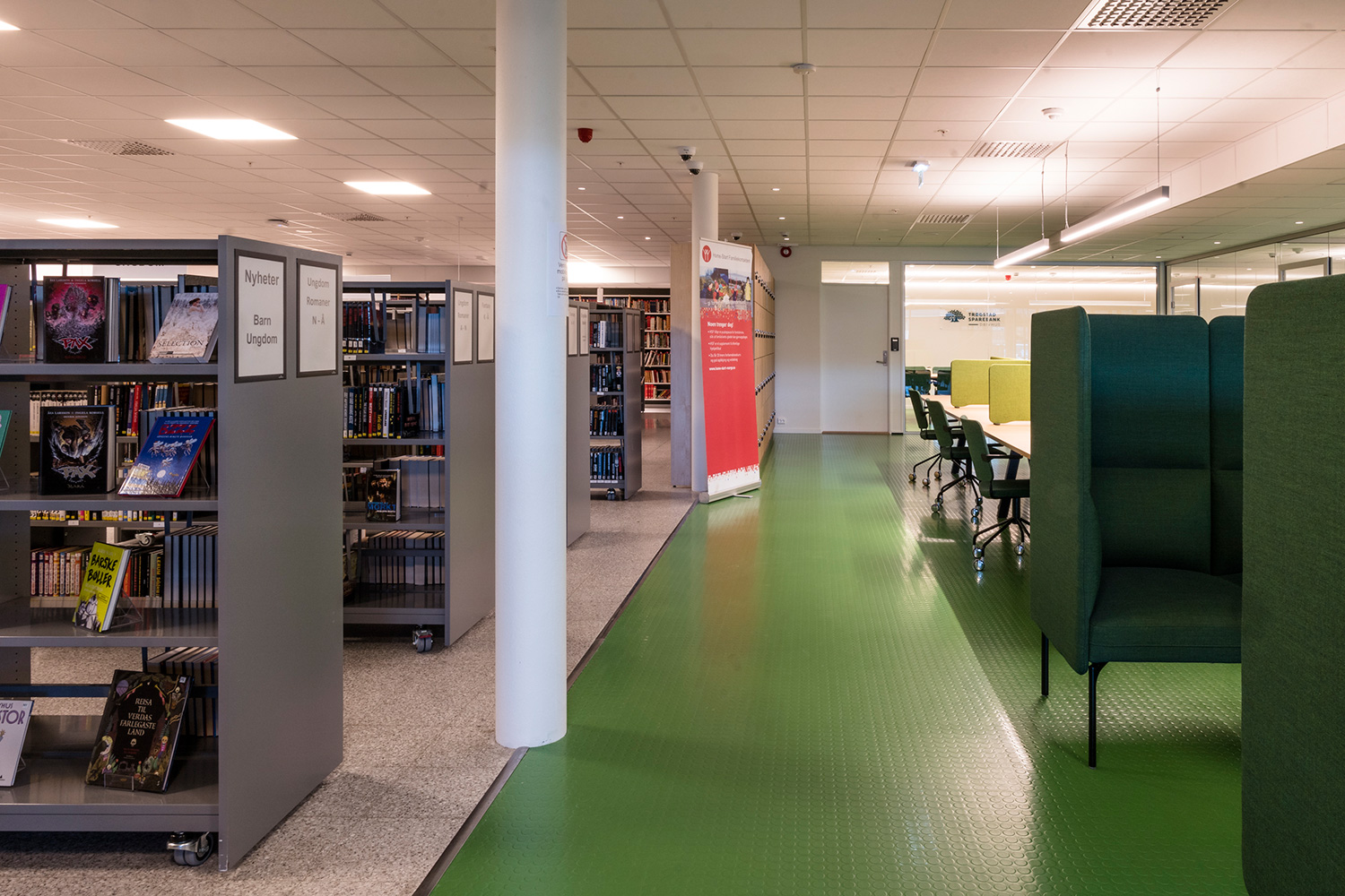 Producten die in de Openbare bibliotheek Trøgstad, Noorwegen gebruikt worden