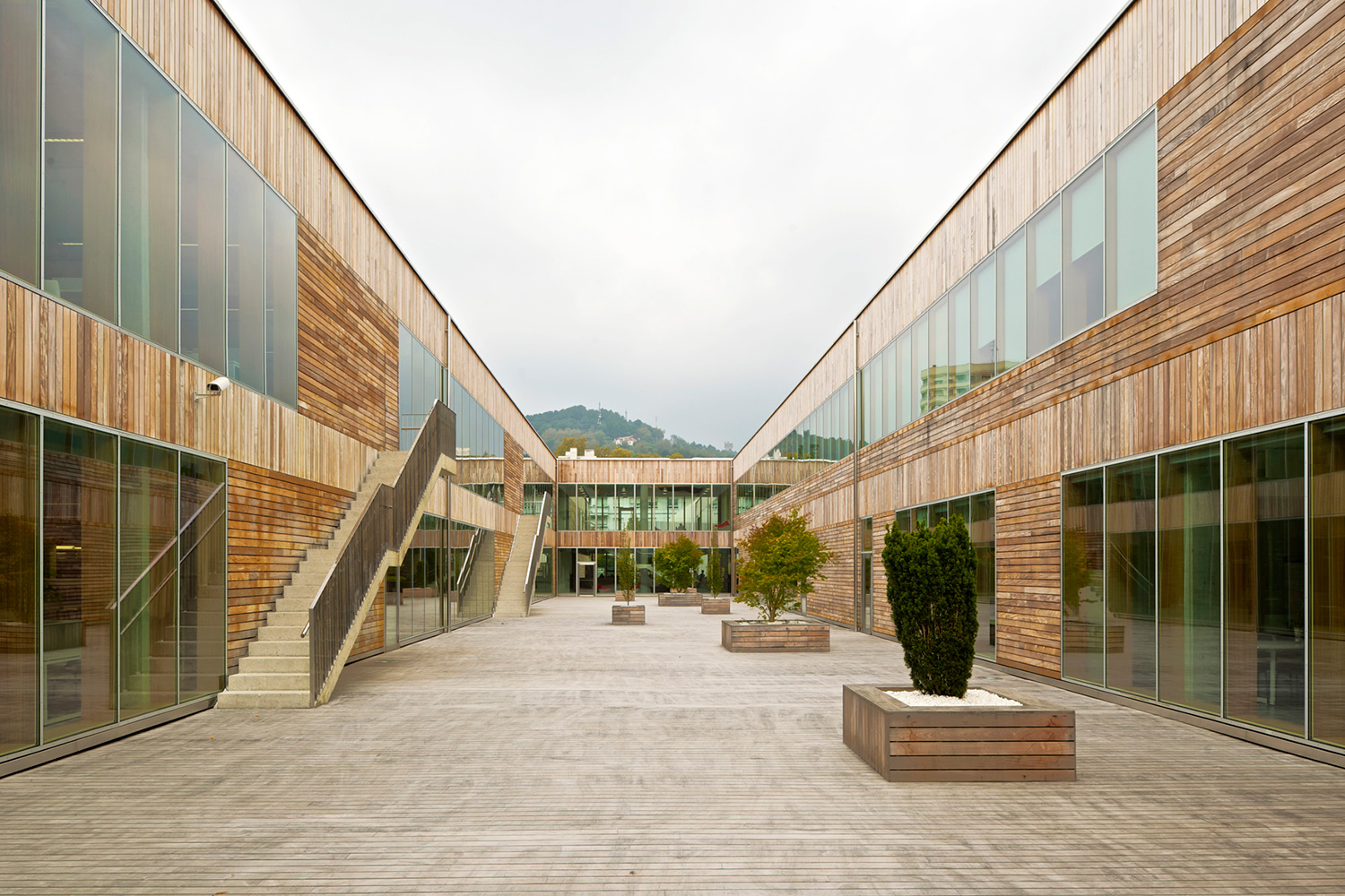Het gebogen centrum met zijn betonnen gevel is een thuis voor de nieuwe campusbibliotheek, maar de 16.600 m2 herbergt ook taallaboratoria en andere leerscholen. De architect beschrijft het ontwerp als volgt : "Een enorme container, gevormd uit een spontane schets die de natuurlijke curve van de partij volgt. De lijn is de muur die de twee blokken, die in een noord-zuid richting staan, en de top staat op de plaats die we het belangrijkste vinden: de hoofdingang van het gebouw, die zich opent als een grote mond, waarbij de top naar de hemel wijst".