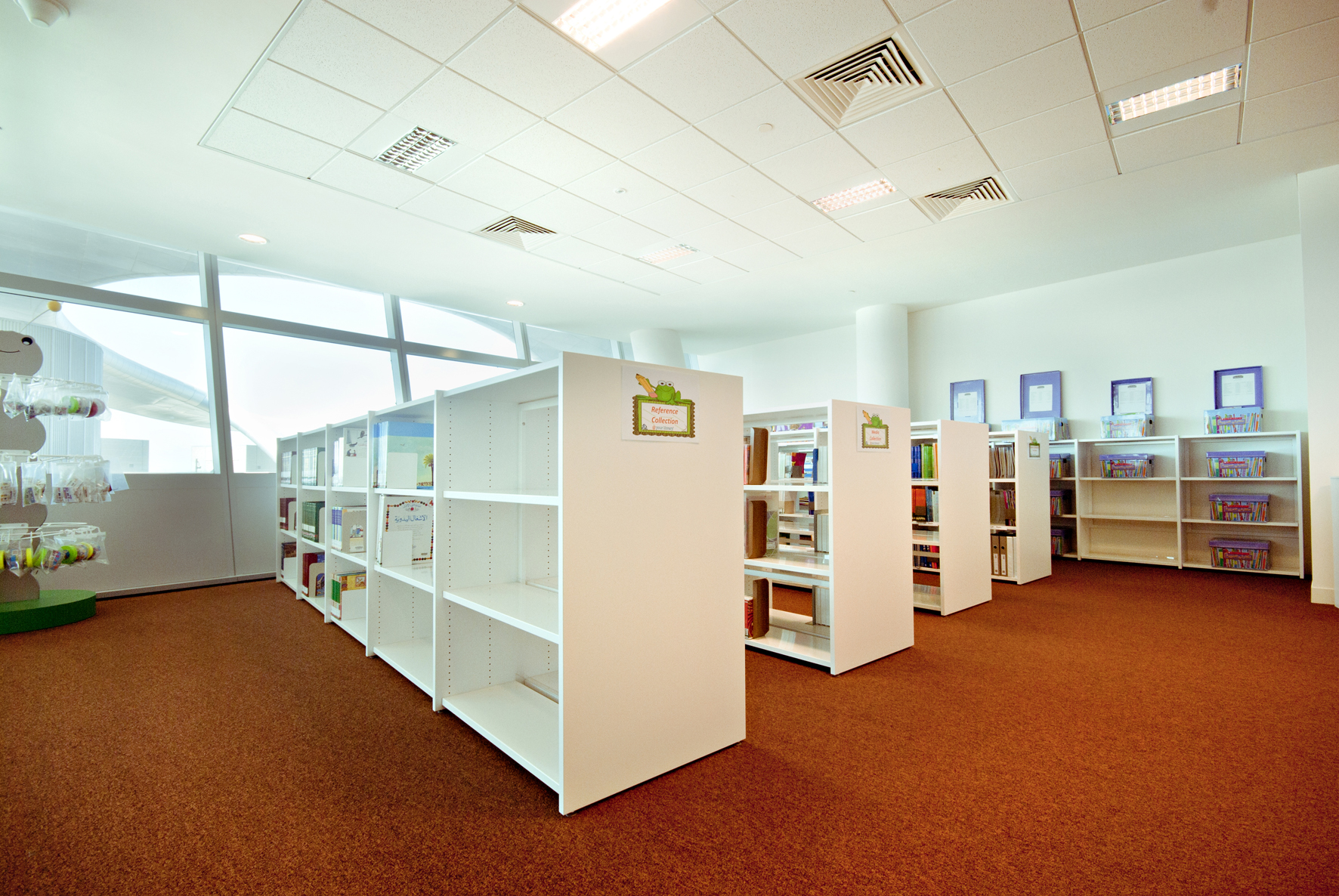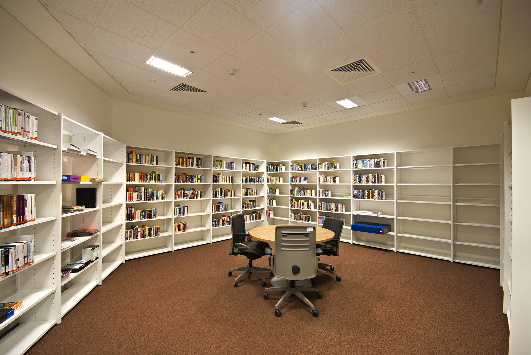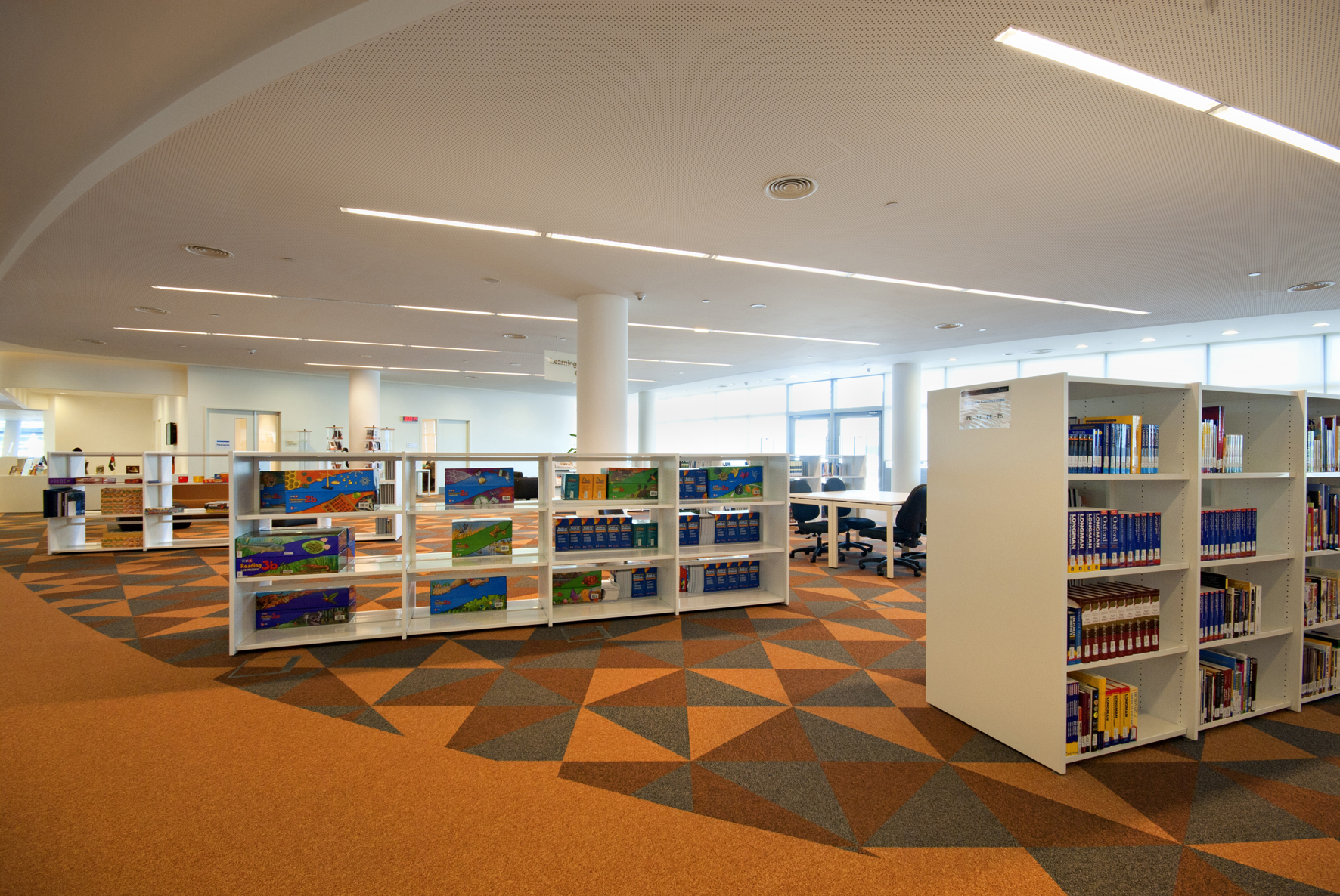 Het vier verdiepingen tellende gebouw is ontworpen als een gestapeld amphitheater, gebaseerd op het design van de US Library of Congress. Je treedt er binnen in een heldere, ontspannende omgeving, bemeubeld met het Slimline reksysteem van BCI in een witte afwerking. Een 18000 m² grote oasis van kennis en informatie.