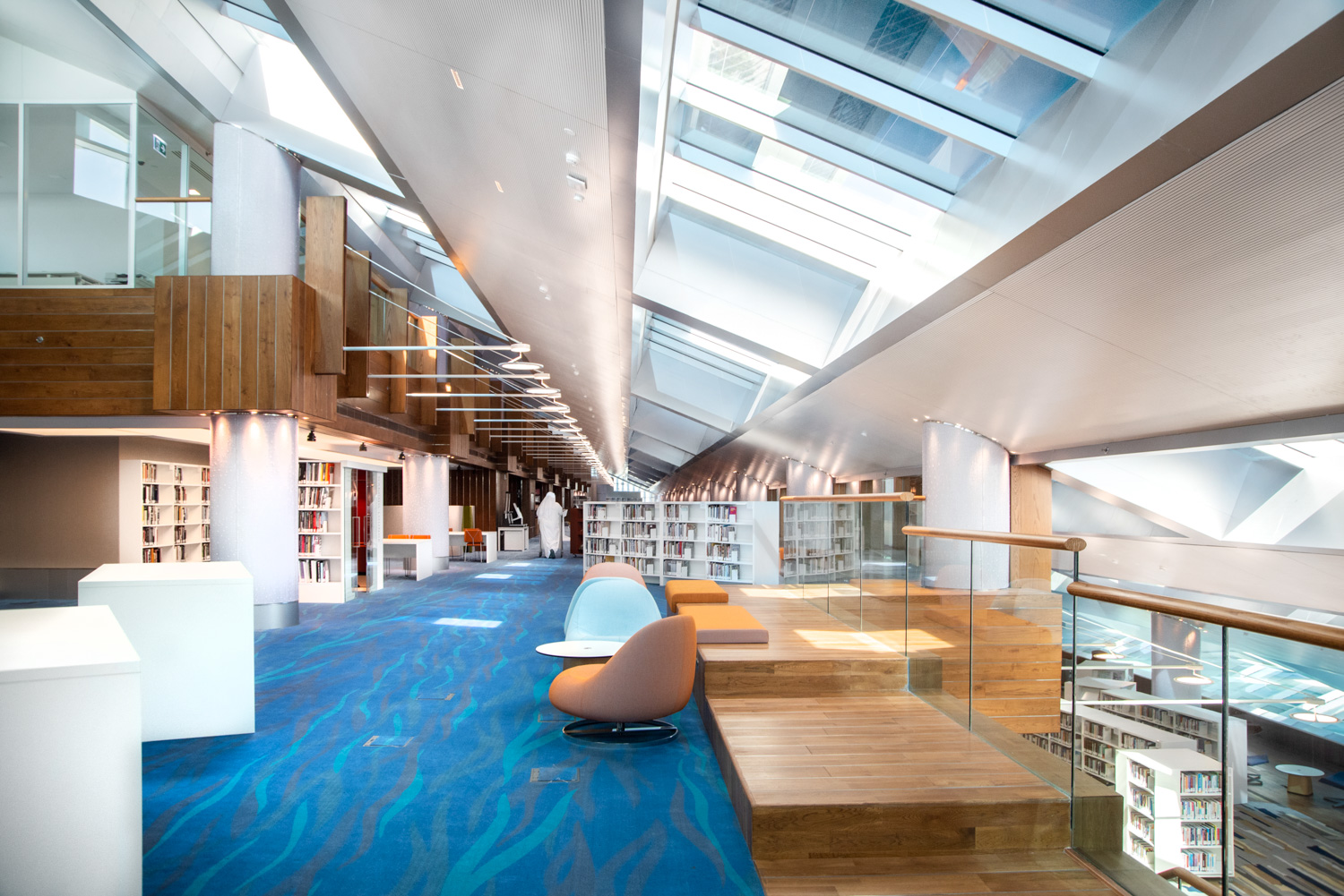 De faciliteit herbergt negen afzonderlijke bibliotheken, gewijd aan alles van media en kunst tot zakelijke titels, internationale tijdschriften, kaarten en atlassen, boeken voor kinderen en jong-volwassenen, en een speciale collectie archiefmateriaal. Dit is naast een amfitheater binnen en buiten, een literair museum en tentoonstellingsruimte, een conferentiecentrum, een café met twee verdiepingen en een cadeauwinkel.