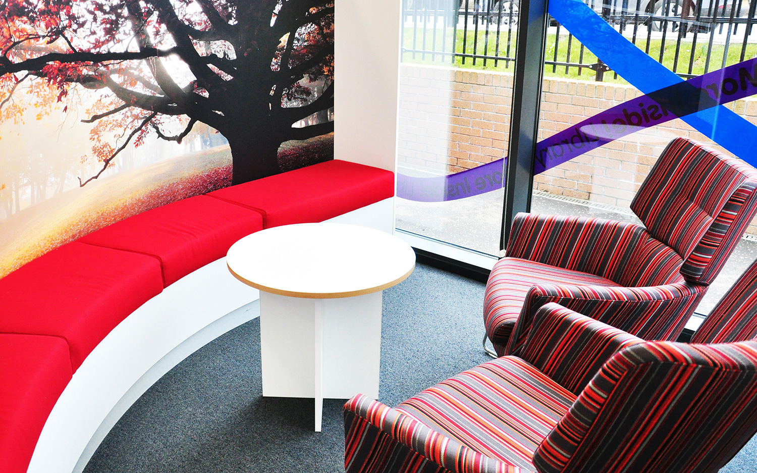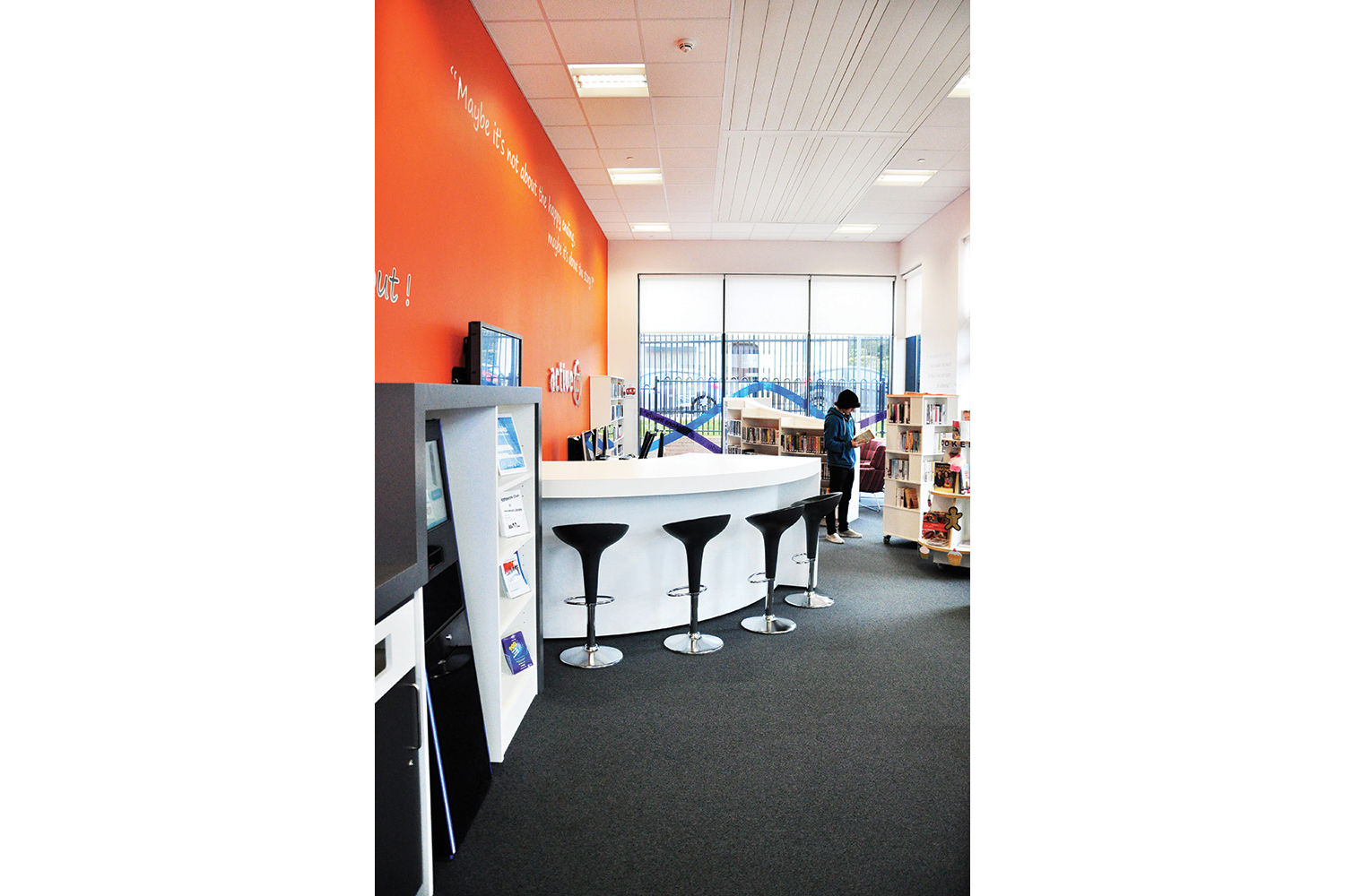 Duidelijke bewegwijzering en poëtische graphics geven een lyrische achtergrond aan een dynamische en technologische bibliotheek die door de gemeenschap wordt gewaardeerd en benut.
