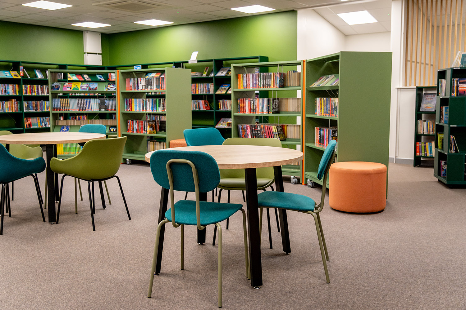 “We are library people” en weten dat toegankelijkheid voor alle studenten essentieel is, ook voor studenten met een lichamelijke beperking of specifieke leerbehoeften. De integratie van rolstoelvriendelijke lay-outs en een rustige zintuigvriendelijke ruimte zorgt ervoor dat iedereen zich in de ruimte kan ontplooien. Het aanbod aan een verscheidenheid ven leeromgevingen ondersteunt ook neurodiverse leerlingen en speelt in op verschillende leerstijlen.