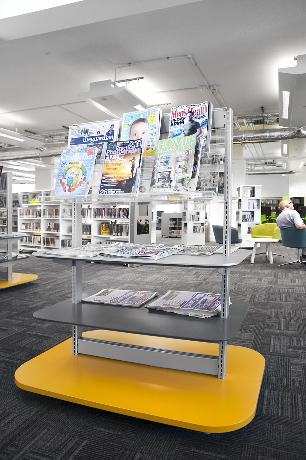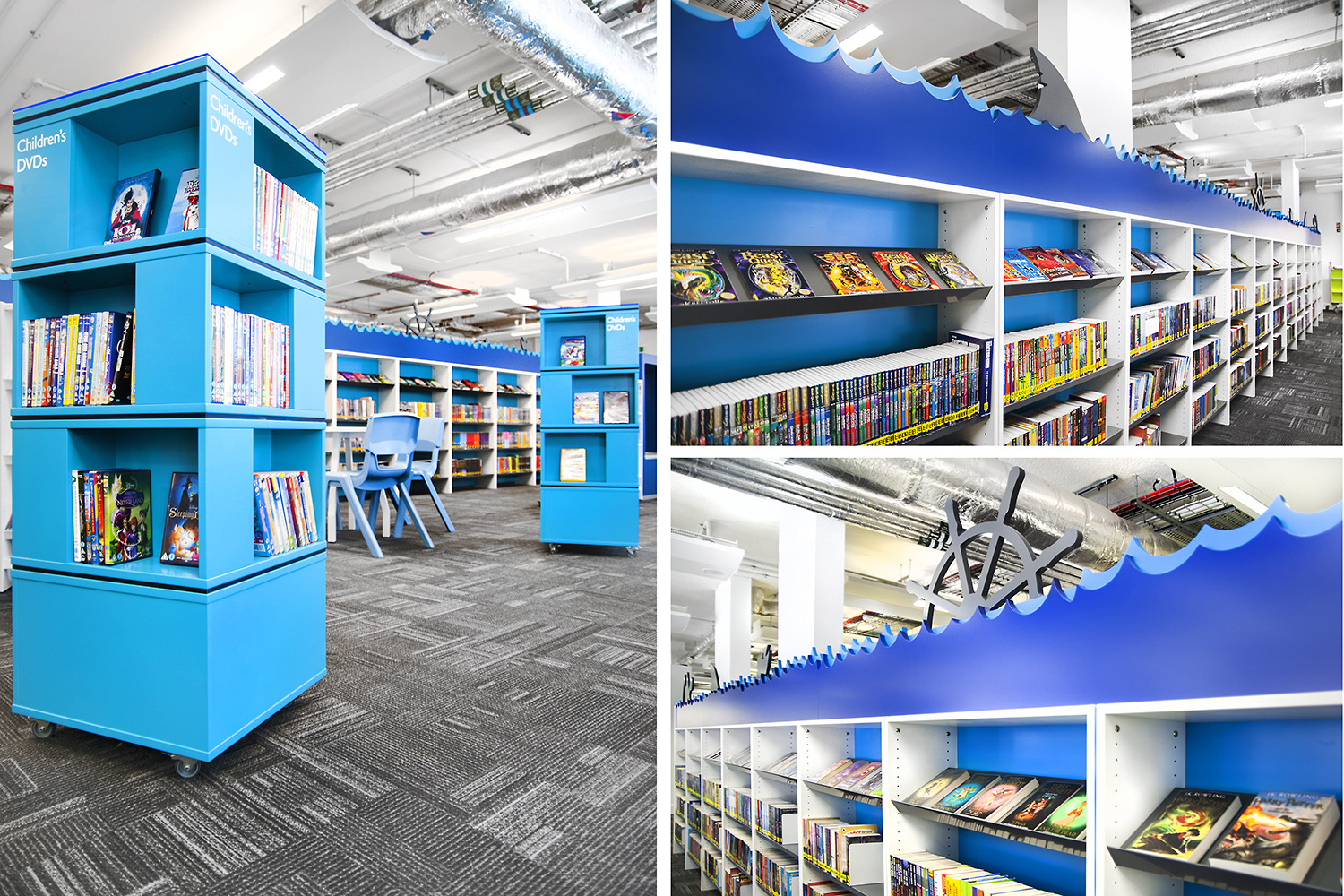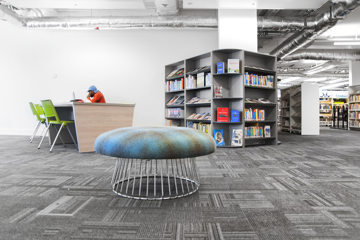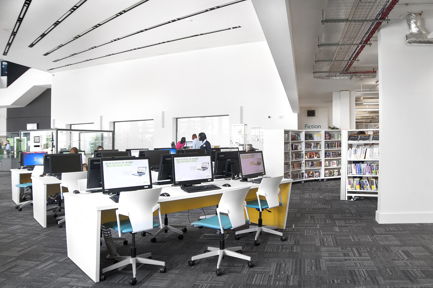 Thedesignconcept introduceerde stimulerende en inspirerende meubelen, gadget bars en digitale technologie in deze spannende bibliotheek ruimte. Verschillende PC’s staan ter beschikking voor het publiek op de PC-bank. Hier hebben de gebruikers toegang tot het internet en een gadget bar biedt faciliteiten aan voor het opladen van telefoons en laptops in de 'stille' studieruimte van de bibliotheek.