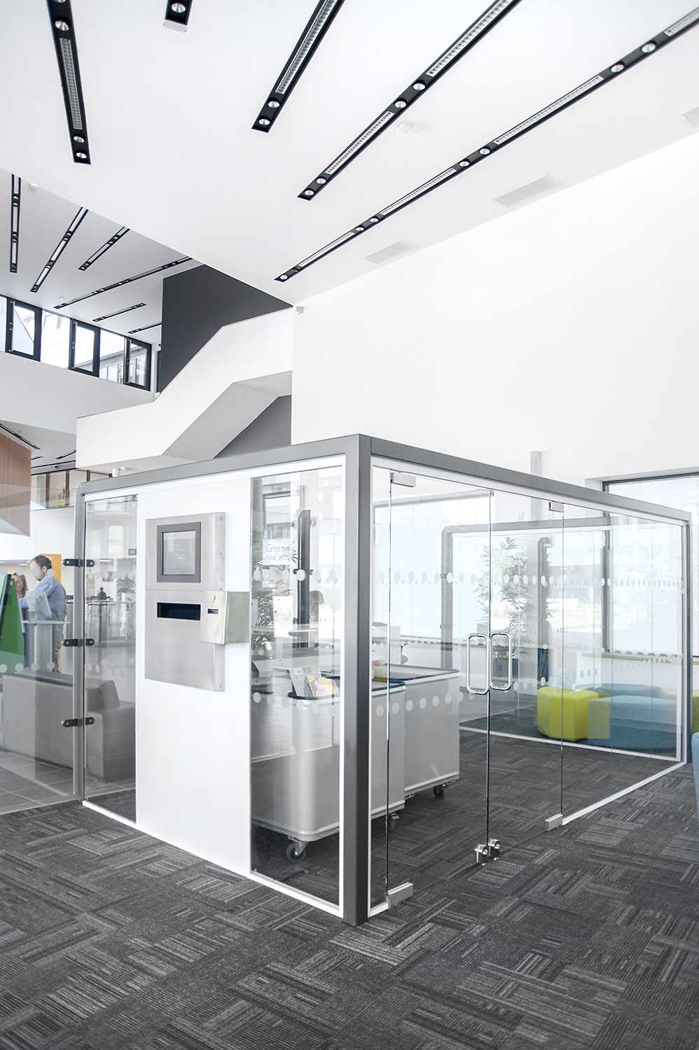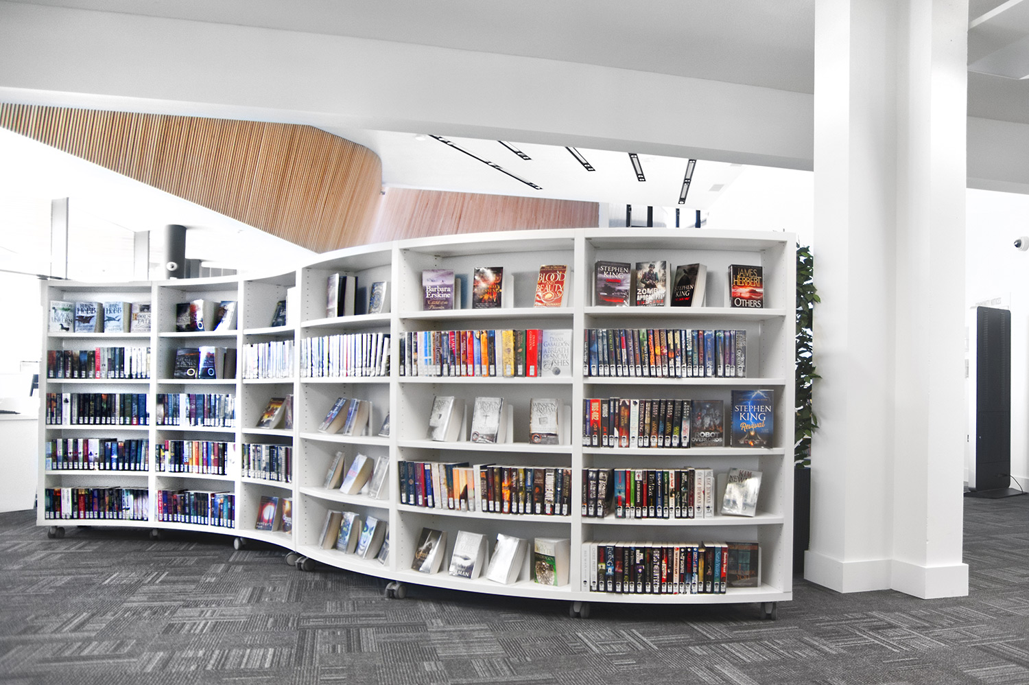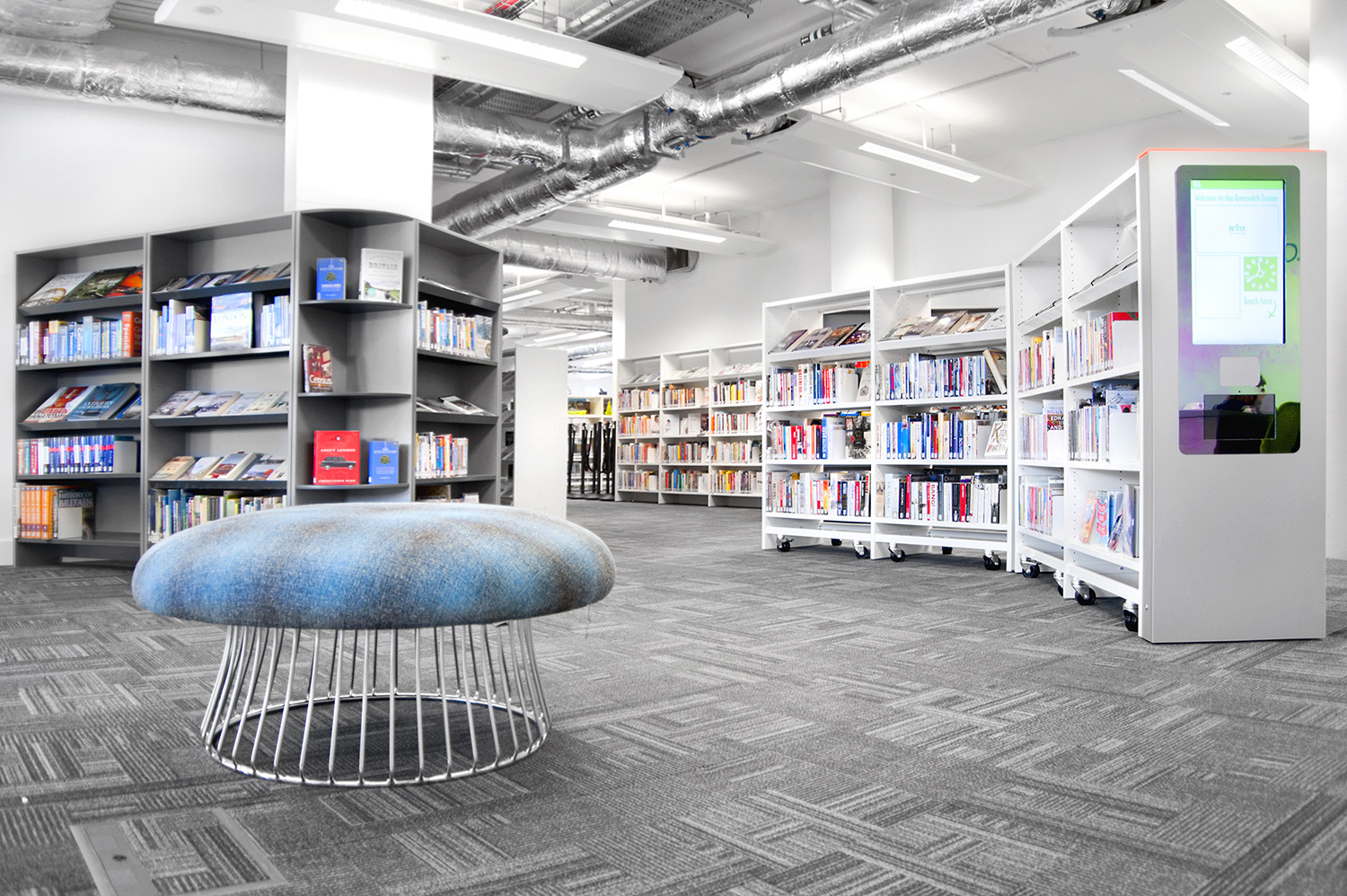 De hele bibliotheek is voorzien van digitale eindpanelen waarop de gebruikers op zoek kunnen gaan naar specifieke boeken en auteurs en deze geven eveneens toegang tot de app van de bibliotheek waar de nieuwste boeken in de belangstelling gezet werden en faciliteiten beschikbaar zijn voor elke klant.