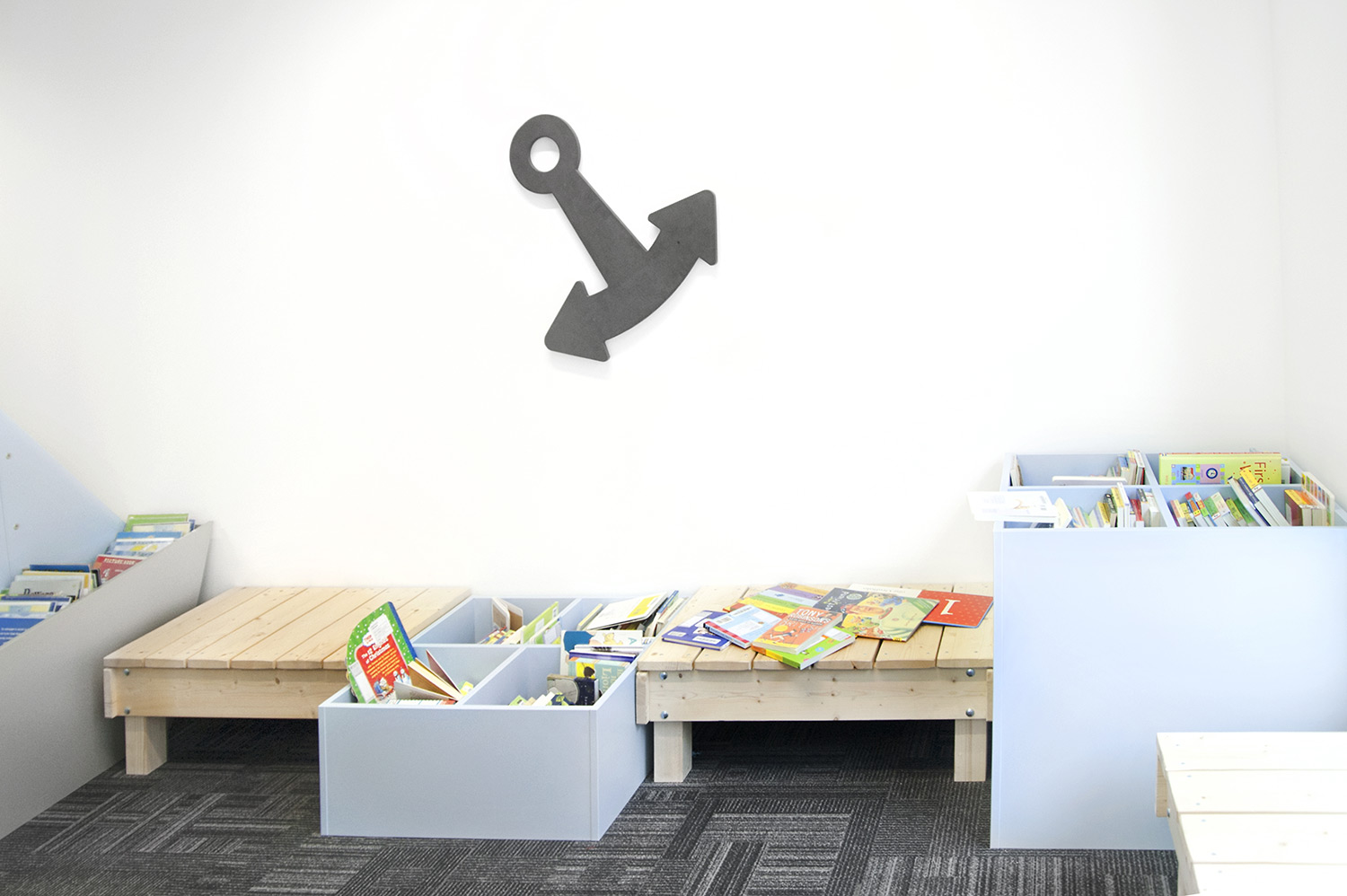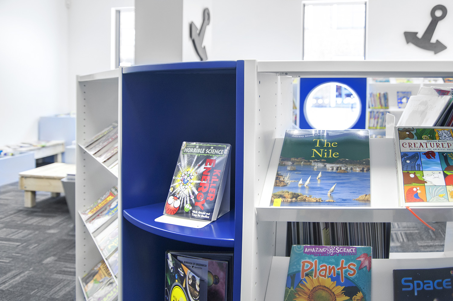 Er werd gewerkt rond een maritiem thema, om de rijke geschiedenis van Greenwich mee op te nemen in het interieur, waardoor de kinderafdeling is uitgerust met boot vormige boekenbakken en de rekken werden voorzien van golven, ankers en patrijspoorten. Ook in de jeugdafdeling staan PC's en tablets beschikbaar voor de jongere bezoekers.