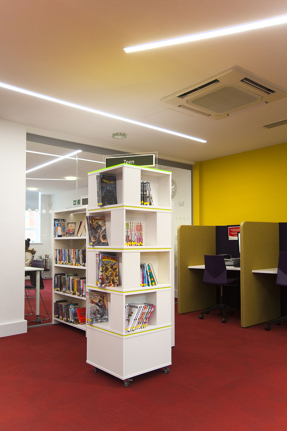 Producten die in de Openbare bibliotheek Palmers Green, London, Verenigd Koninkrijk gebruikt worden