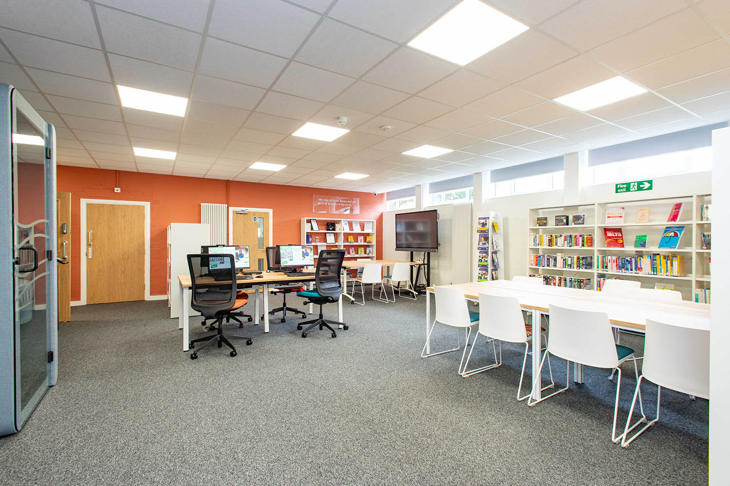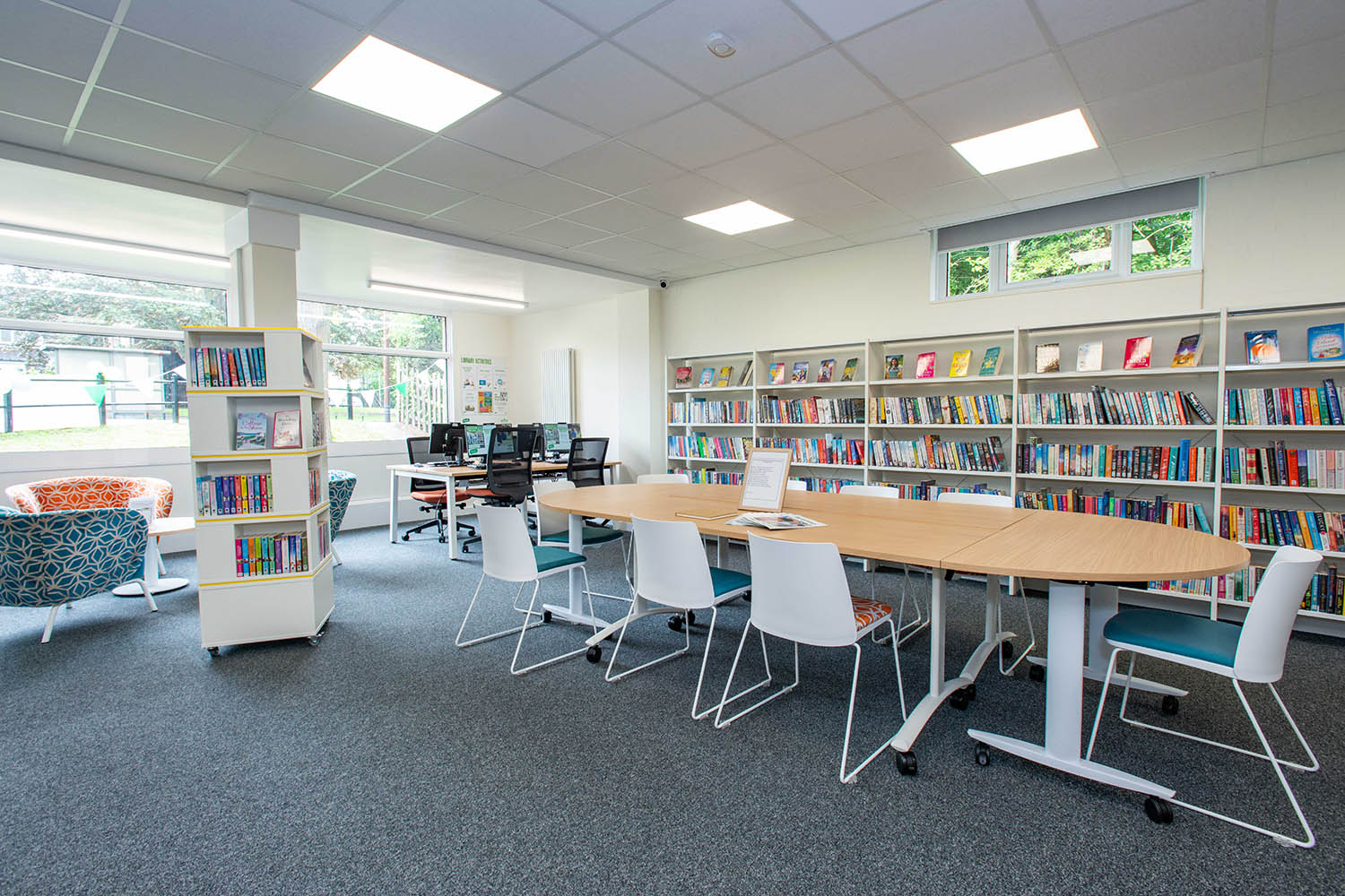Vandaag voelt de bib veel lichtrijker en ruimer aan. Het gebouw is ook veel milieuvriendelijker, met dubbele beglazing en een energiezuinige verwarmingsinstallatie en verlichting. Een meer open inrichting moest een flexibele invulling van de ruimte mogelijk maken. Het meeste meubilair is verplaatsbaar, waardoor moeiteloos plaats kan worden gemaakt voor evenementen met grotere groepen. Er zijn privéruimten beschikbaar voor vertrouwelijke gesprekken met klanten, en een akoestische cel voor telefoon- of videogesprekken.