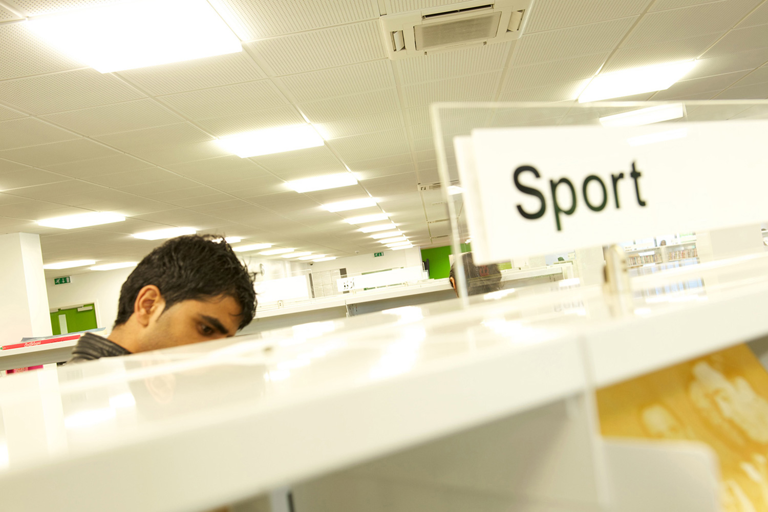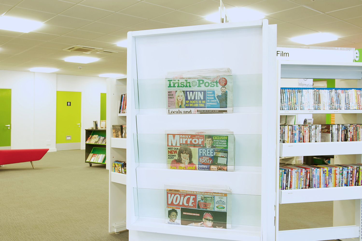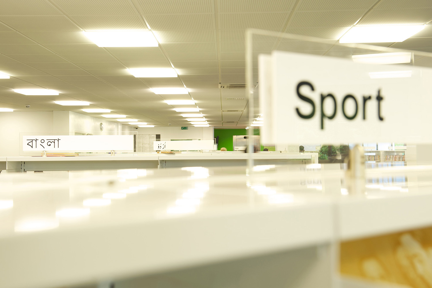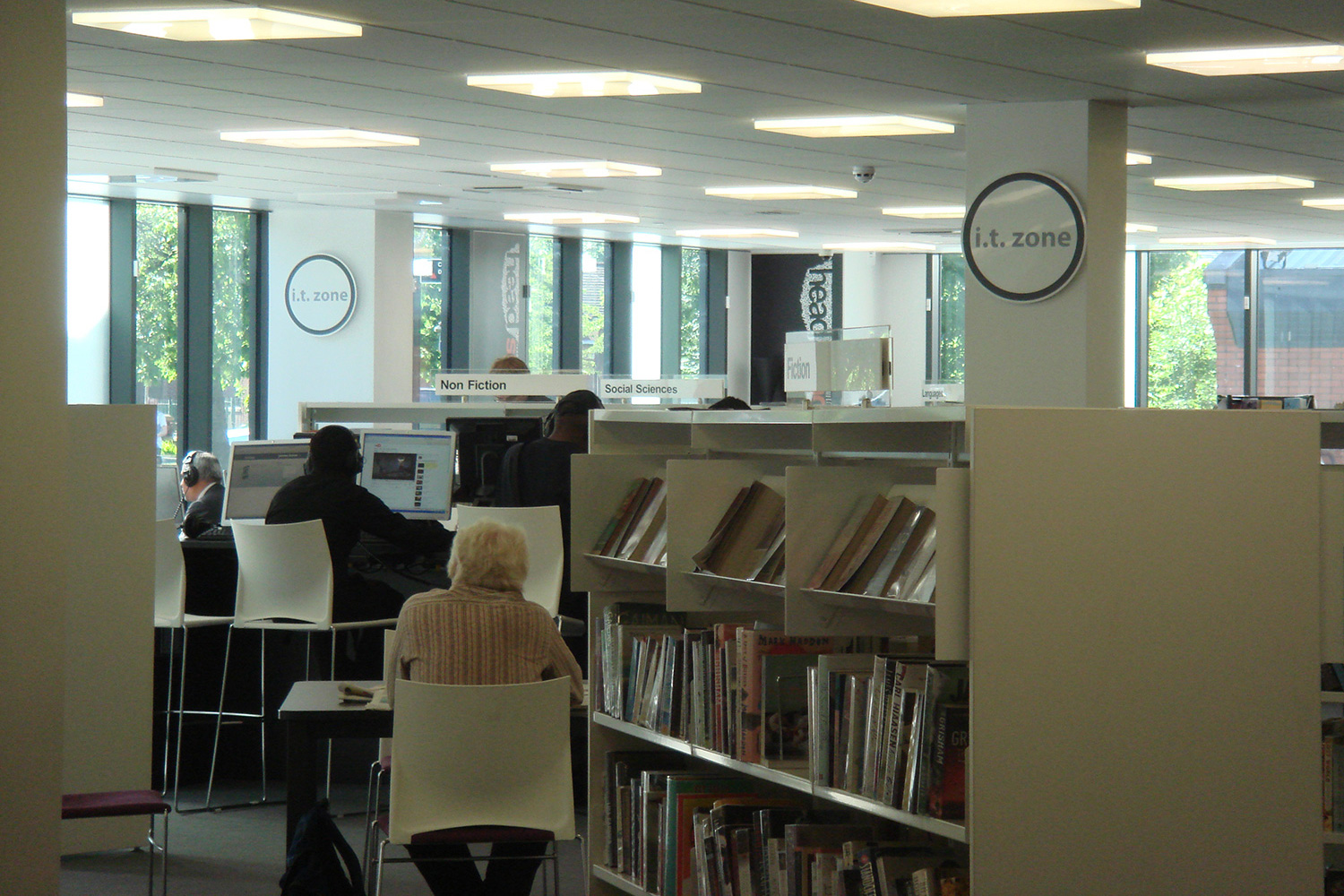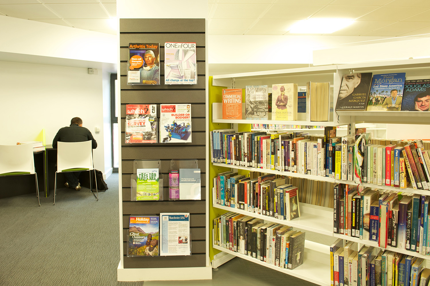 Producten die in de Openbare bibliotheek Longsight, Manchester, Verenigd Koninkrijk gebruikt worden