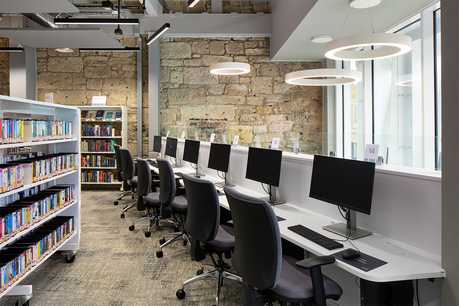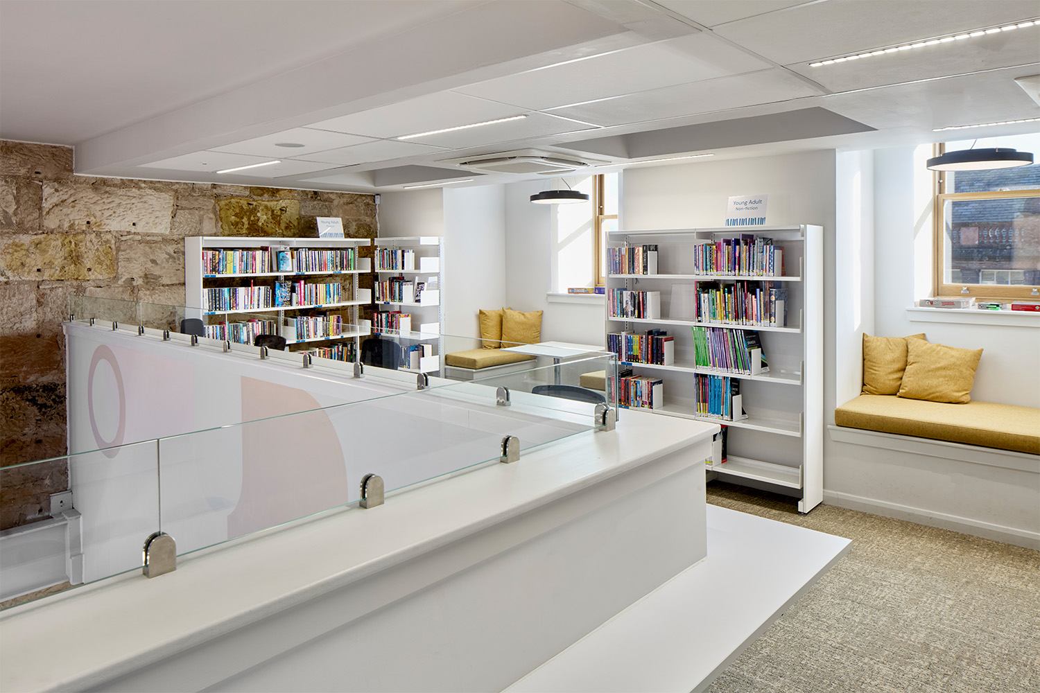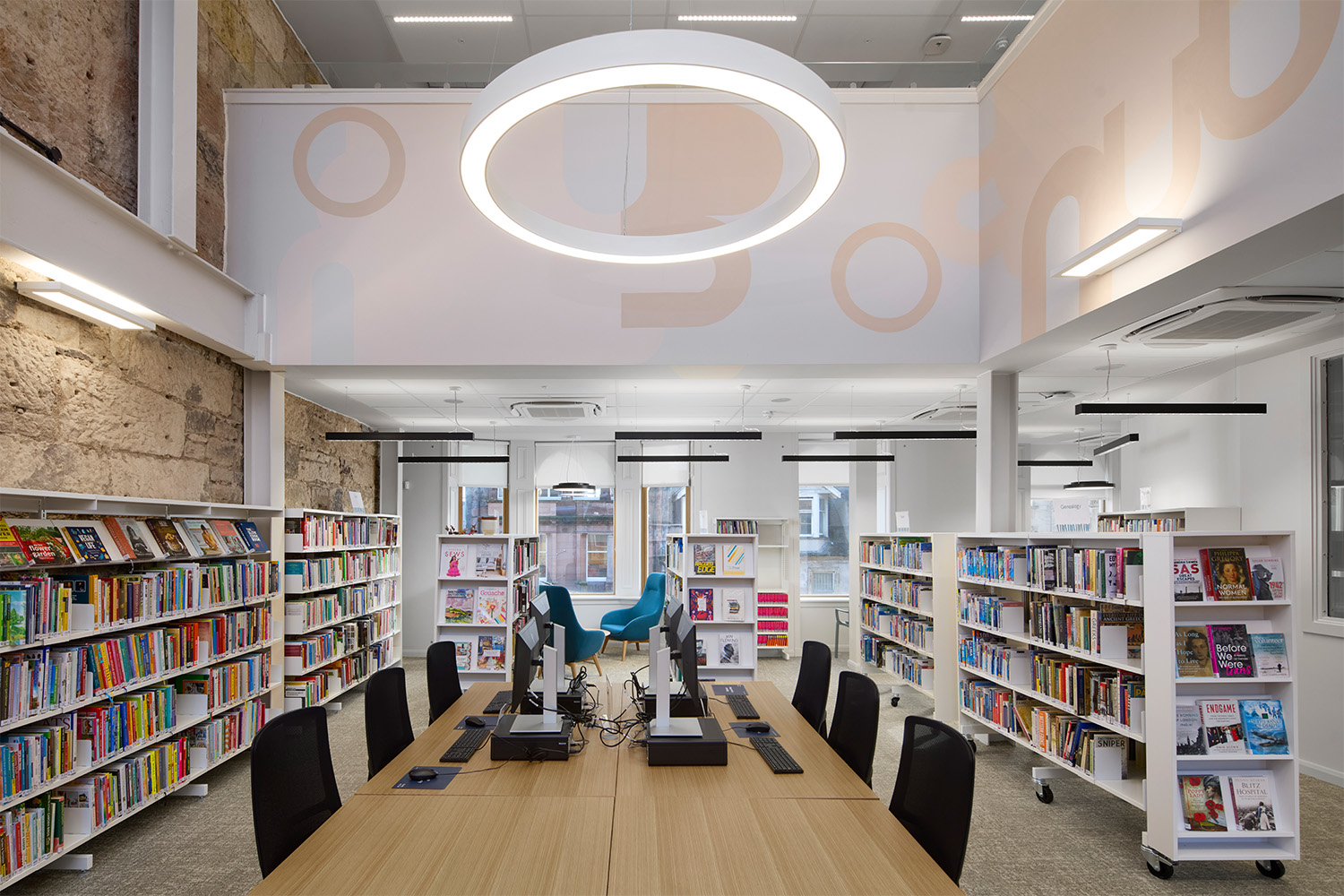 Voor dit project werden de vier verdiepingen van het voormalige winkelpand volledig gerenoveerd en werd het gebouw voorzien van een moderne voorgevel. De begane grond bestaat uit een ontvangstruimte en een plek waar iedereen welkom is om te genieten van een van de beste bibliotheekfaciliteiten van Schotland.