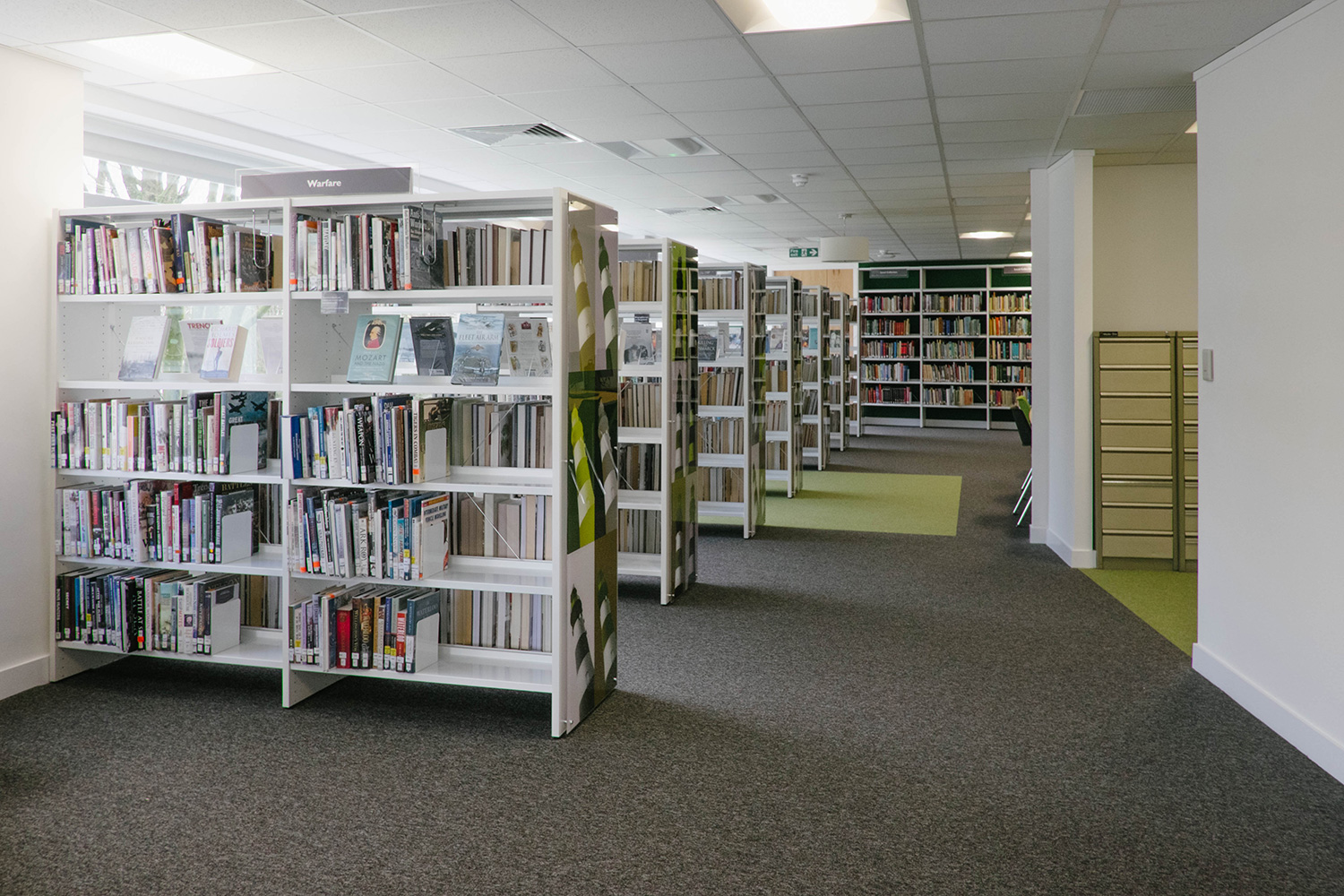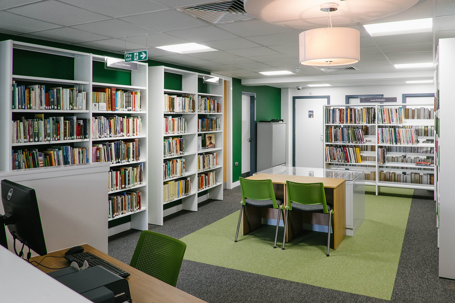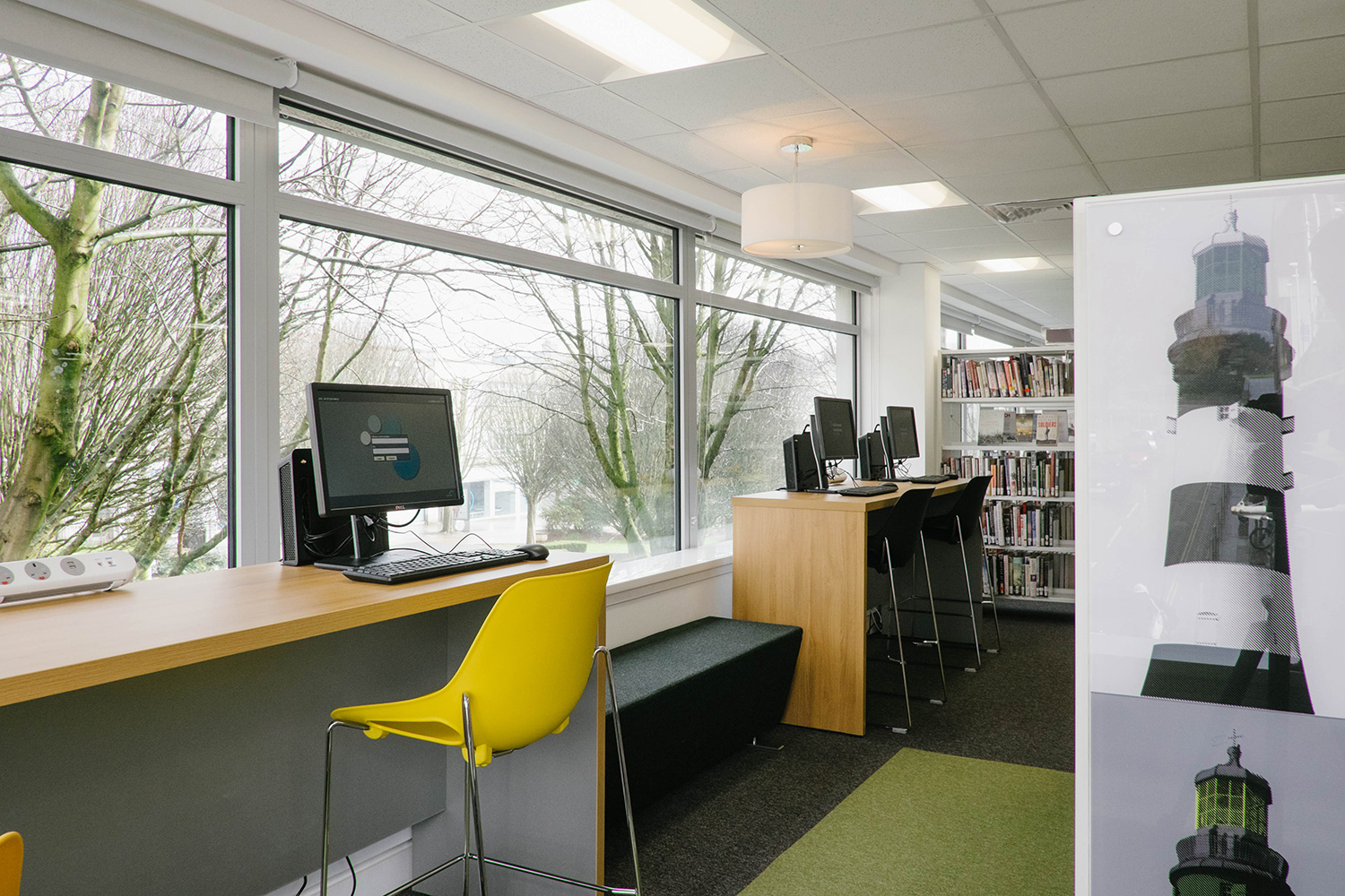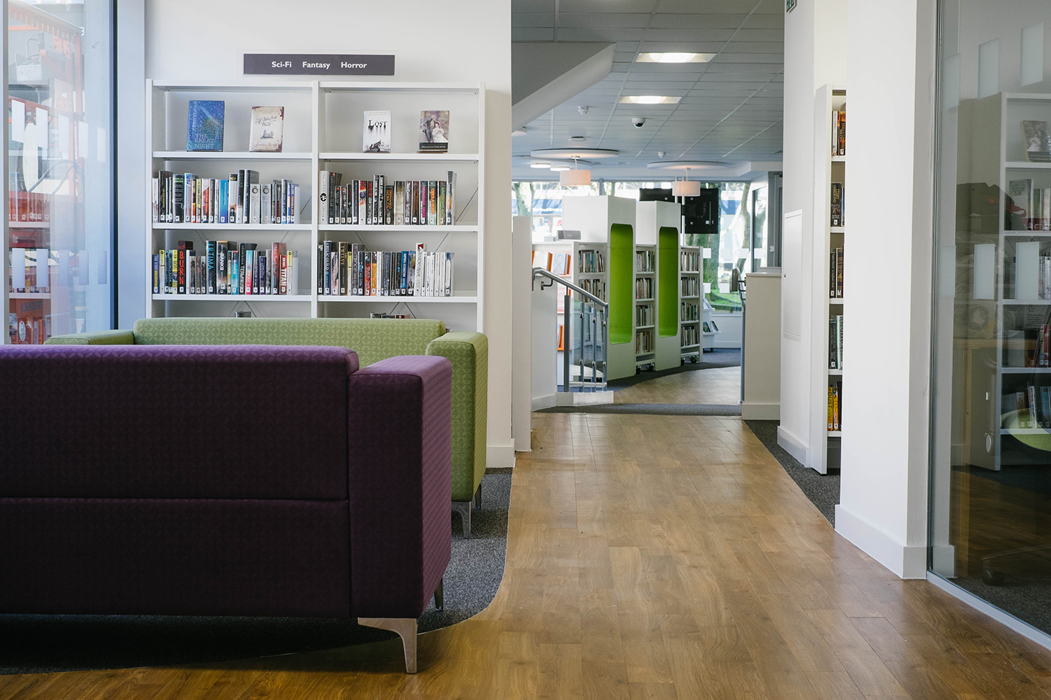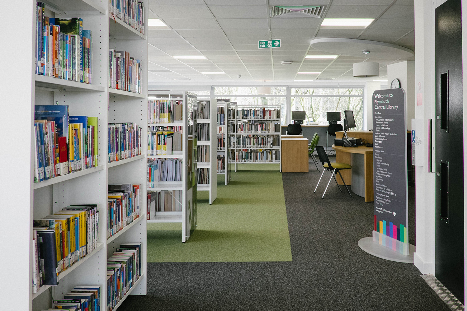 Het verhaal begon met een nieuw pand want de bibliotheek moest heropenen in het hart van de stad, omringd door diverse commerciële ruimtes. Thedesignconcept was zeer enthousiast om een bibliotheek te ontwerpen die in het oog zou springen en de bezoekers zou aanmoedigen om de bibliotheek te bezoeken. Het ontwerp kwam tot leven rond de “statement tree” die centraal staat in de kinderafdeling en dewelke omringd is door fel gekleurde meubels en op maat gemaakte illustraties waardoor er een levendige en gastvrije omgeving voor alle bezoekers werd gecreëerd.