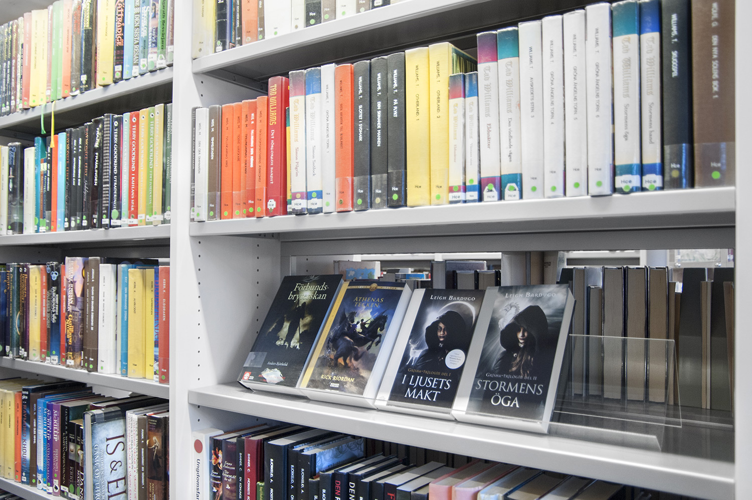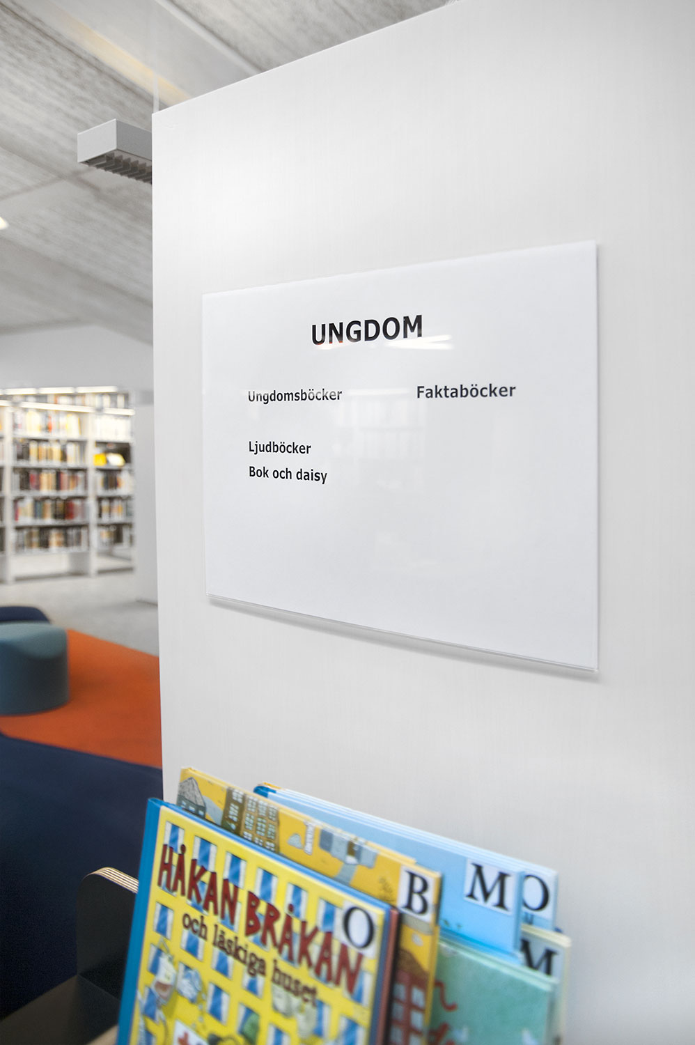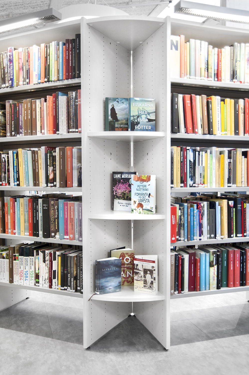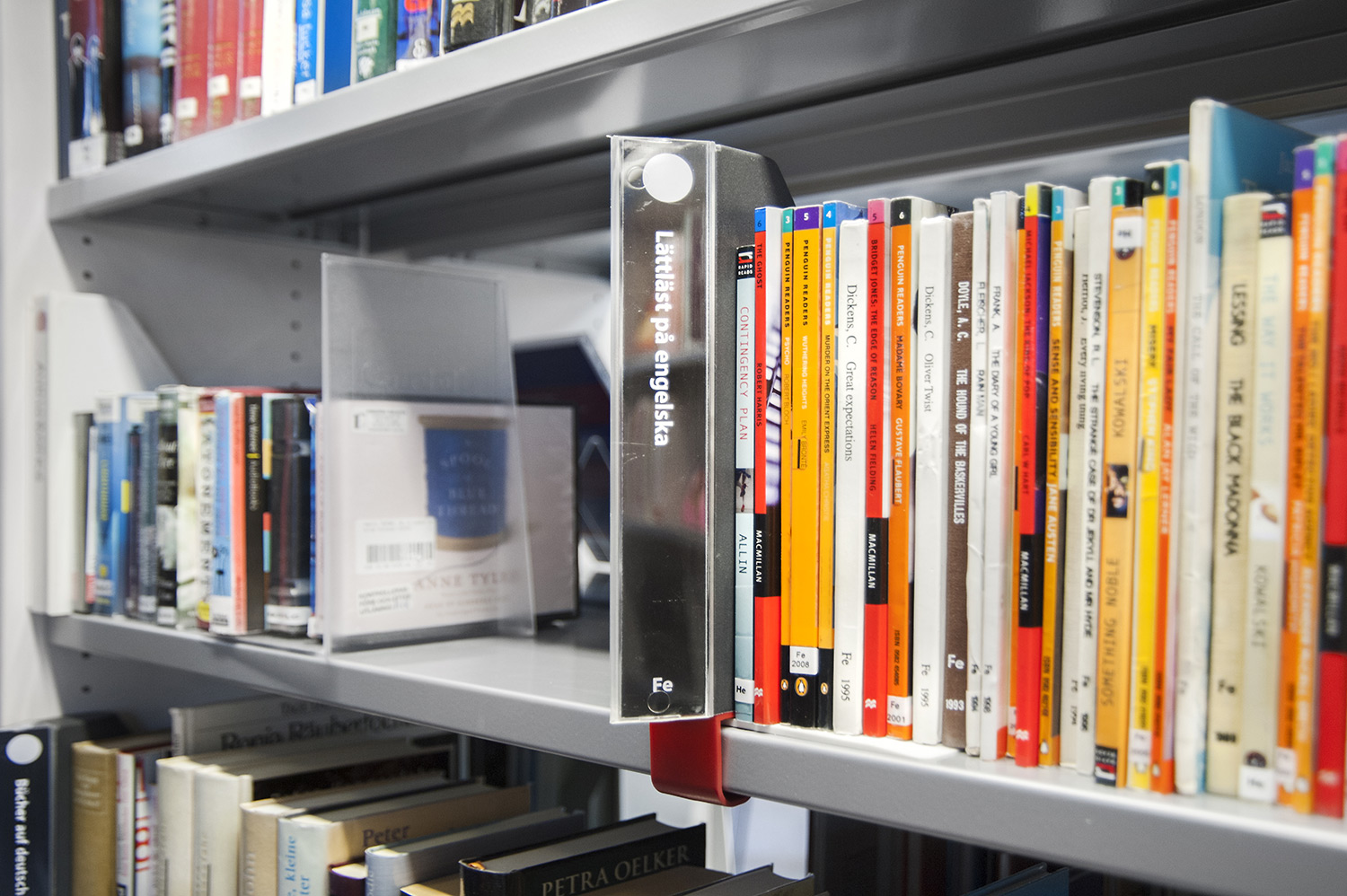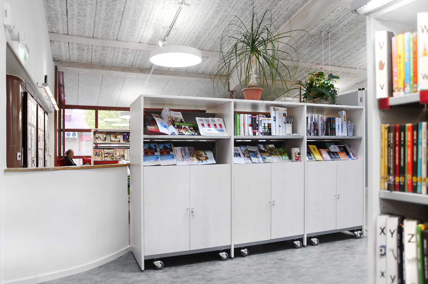 Lammhults Biblioteksdesign heeft het Slimline rekkensysteem geleverd met Big Book verlichting. De legborden en de bovenlegborden zijn vervaardigd uit wit gepigmenteerd berken, terwijl de andere legborden vervaardigd zijn uit zilverkleurig staal. Dezelfde rekken wordt gebruikt in de magazijn-afdeling; Slimline op wielen, met presentatielegborden in het bovenste deel en deuren onderaan om de onderste legborden te bedekken.