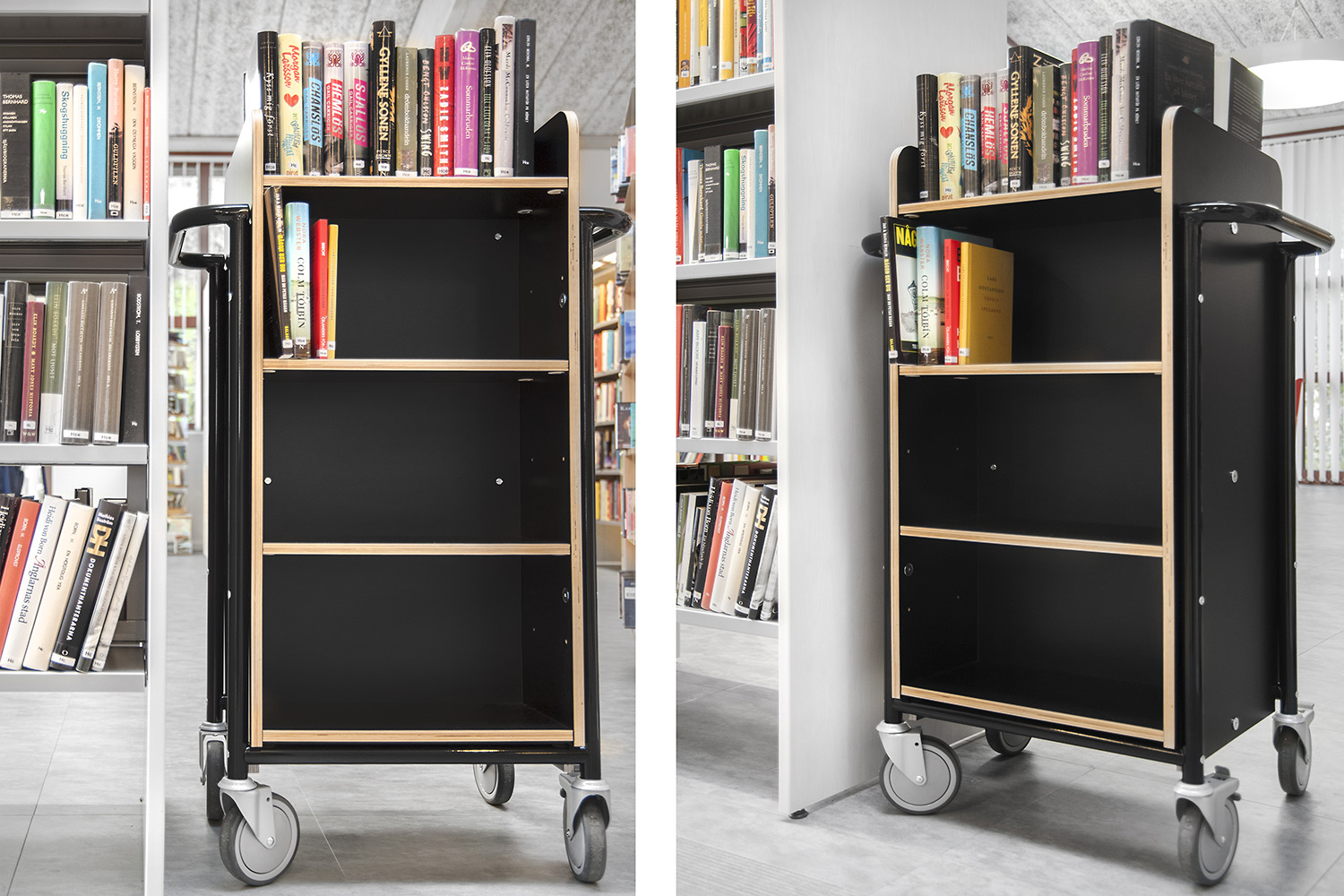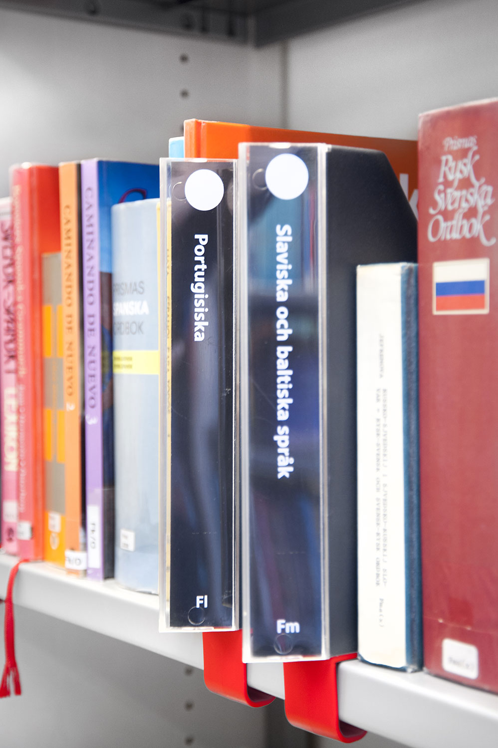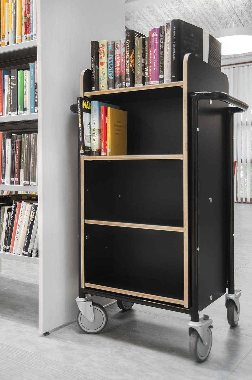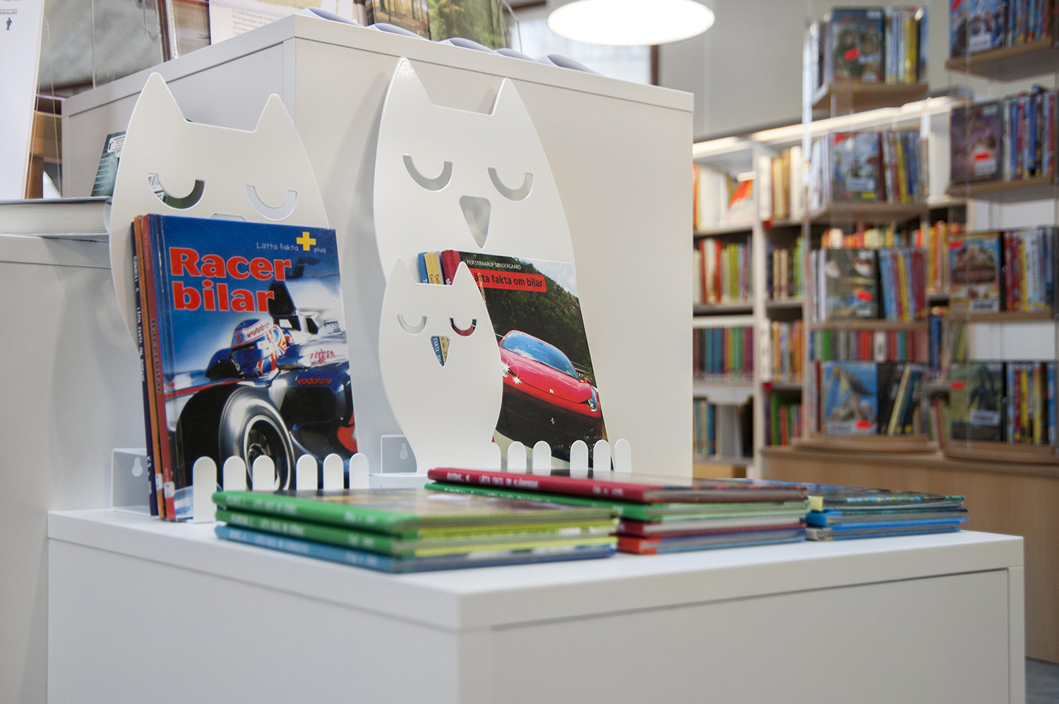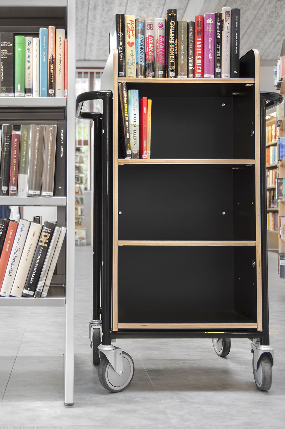Lammhults Biblioteksdesign heeft het Slimline rekkensysteem geleverd met Big Book verlichting. De legborden en de bovenlegborden zijn vervaardigd uit wit gepigmenteerd berken, terwijl de andere legborden vervaardigd zijn uit zilverkleurig staal. Dezelfde rekken wordt gebruikt in de magazijn-afdeling; Slimline op wielen, met presentatielegborden in het bovenste deel en deuren onderaan om de onderste legborden te bedekken.