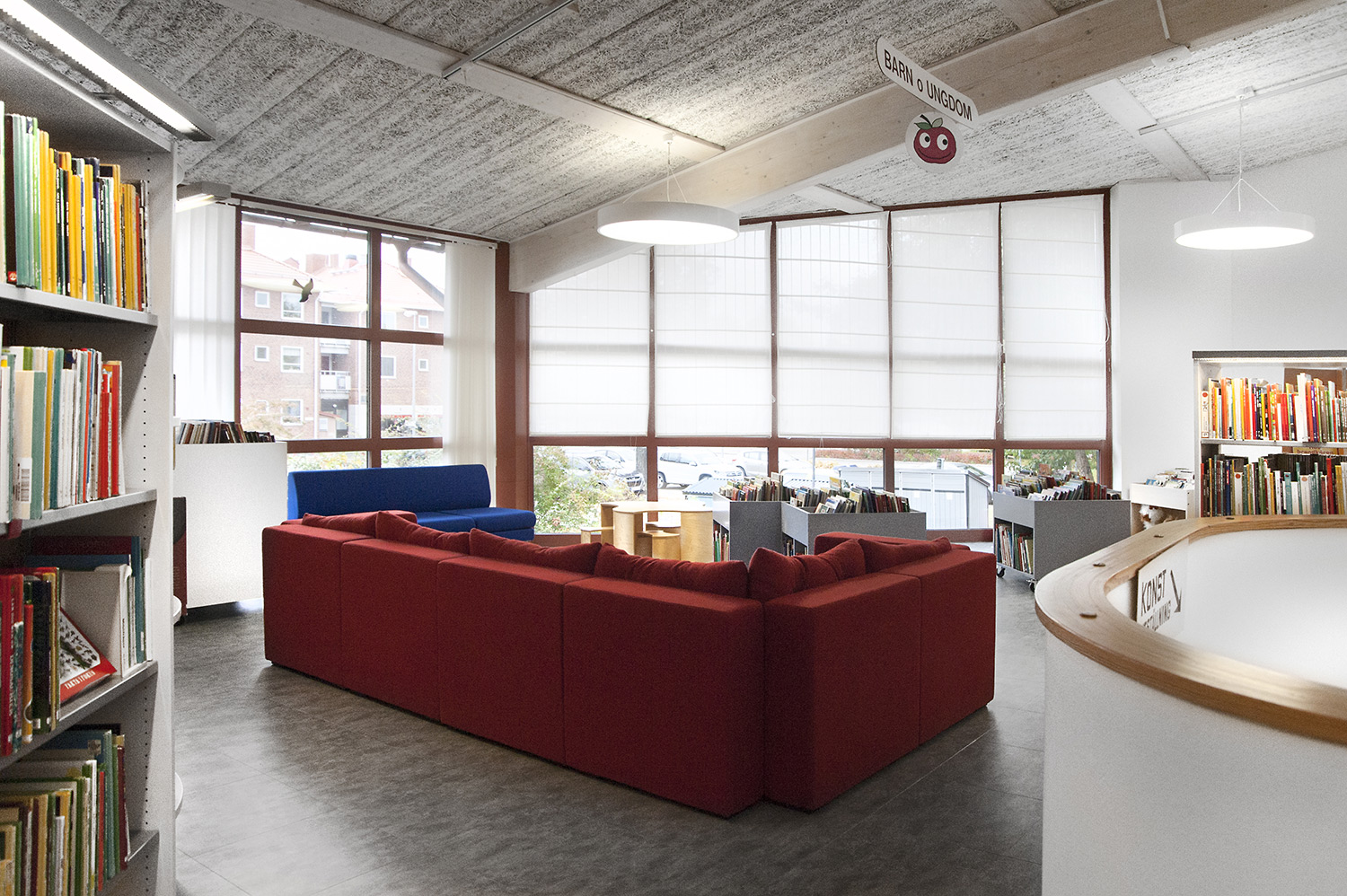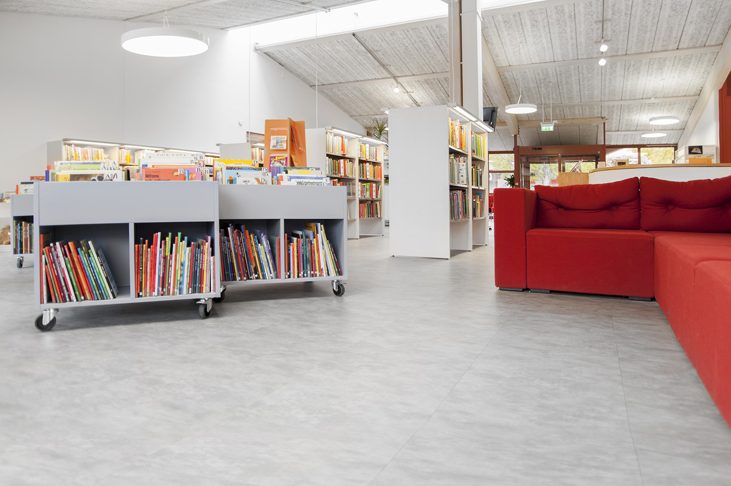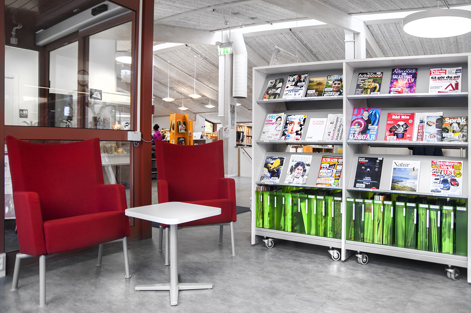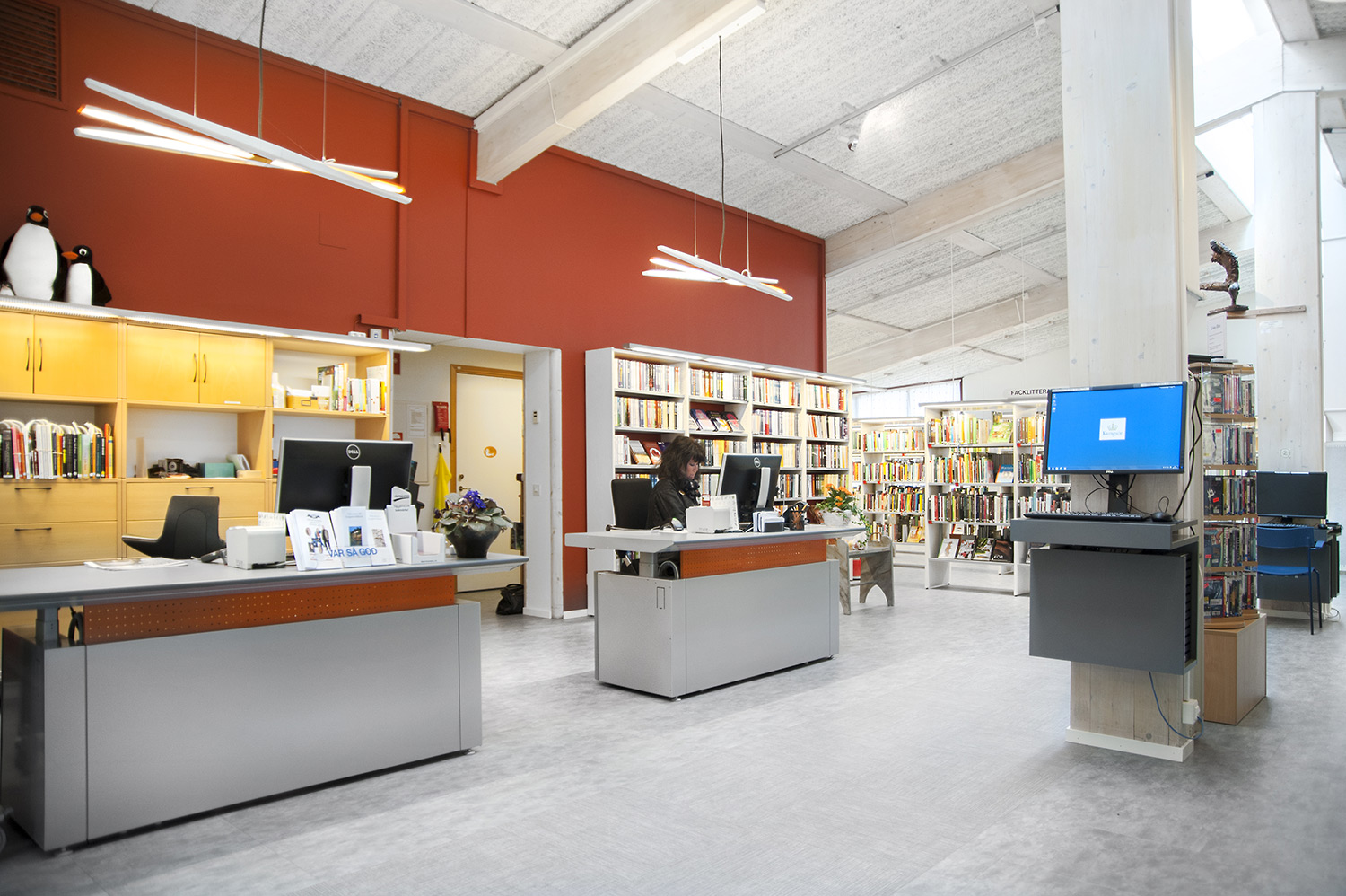 De openbare bibliotheek van Kungsörs heeft haar faciliteiten, meubels en interieur bijgewerkt zodat ze voldoet aan de huidige behoeften van een moderne bibliotheek. Door middel van nieuwe vloeren, afwerking en nieuwe meubels hebben de bezoekers een bibliotheek die zowel moderne als gezellig is!