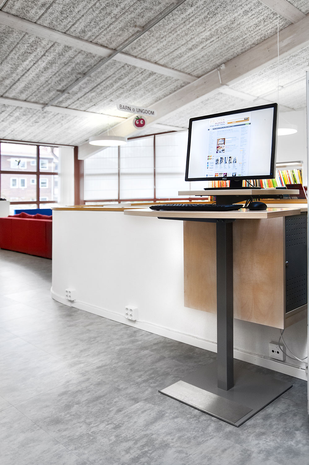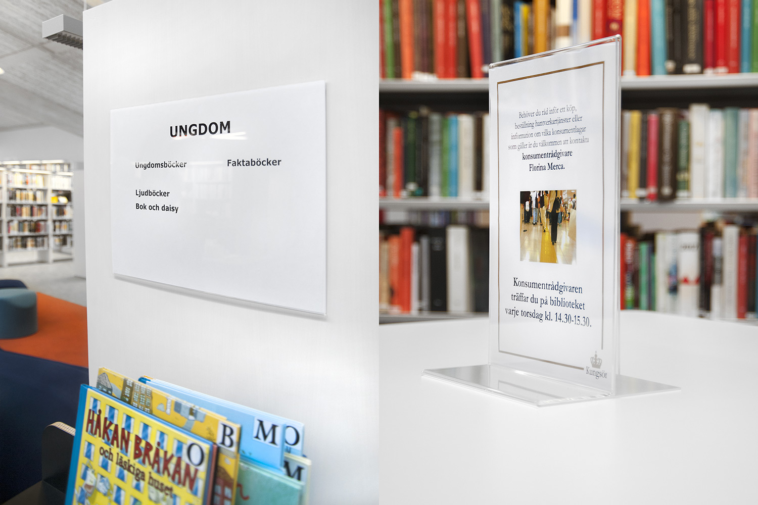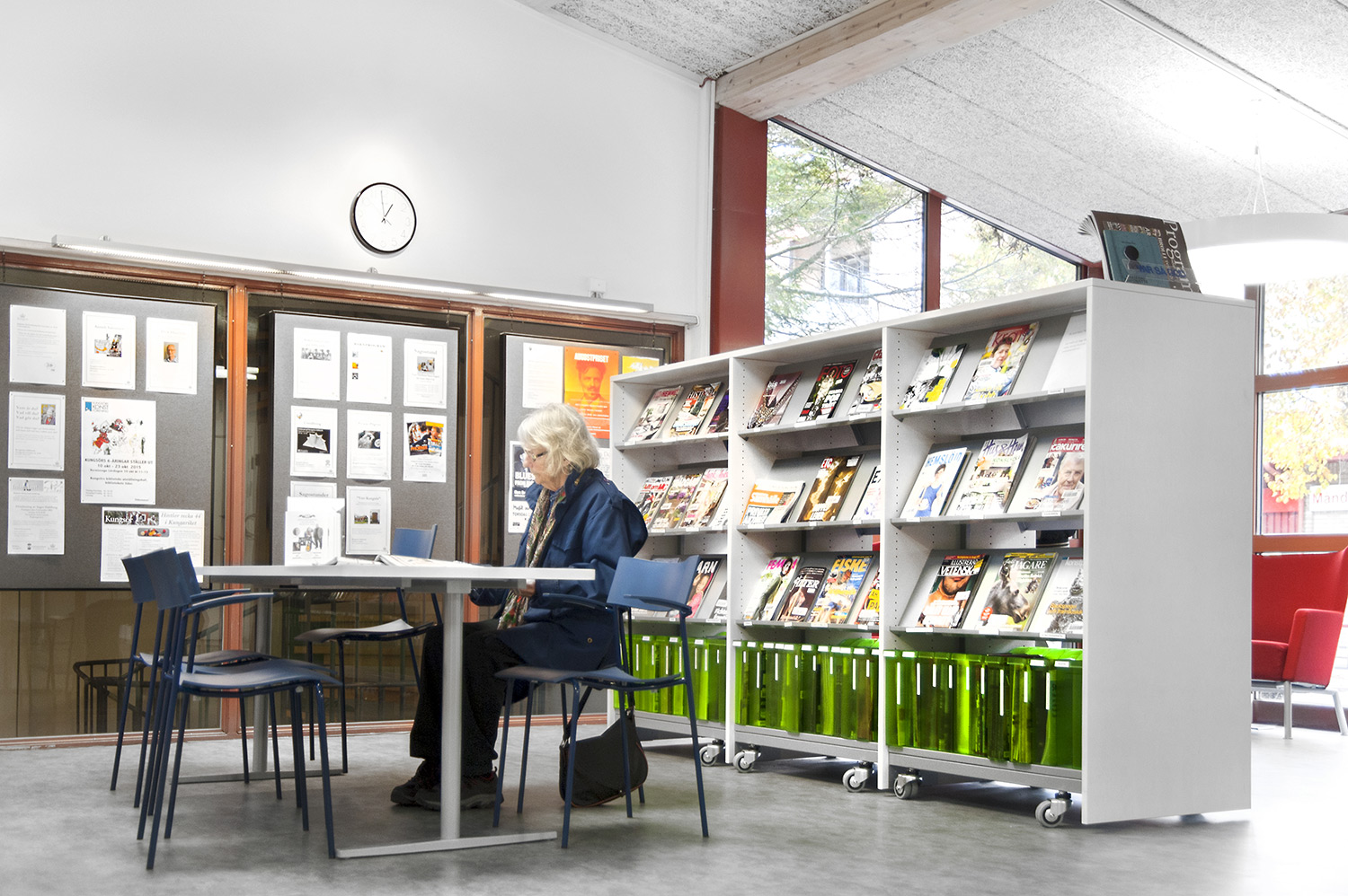 De openbare bibliotheek van Kungsörs heeft haar faciliteiten, meubels en interieur bijgewerkt zodat ze voldoet aan de huidige behoeften van een moderne bibliotheek. Door middel van nieuwe vloeren, afwerking en nieuwe meubels hebben de bezoekers een bibliotheek die zowel moderne als gezellig is!