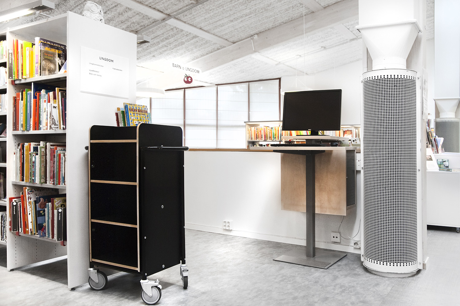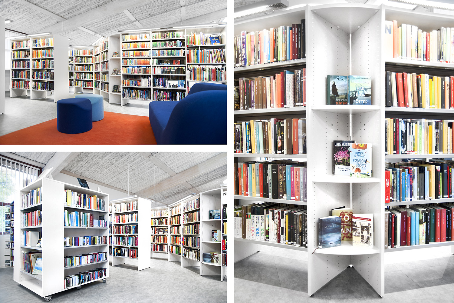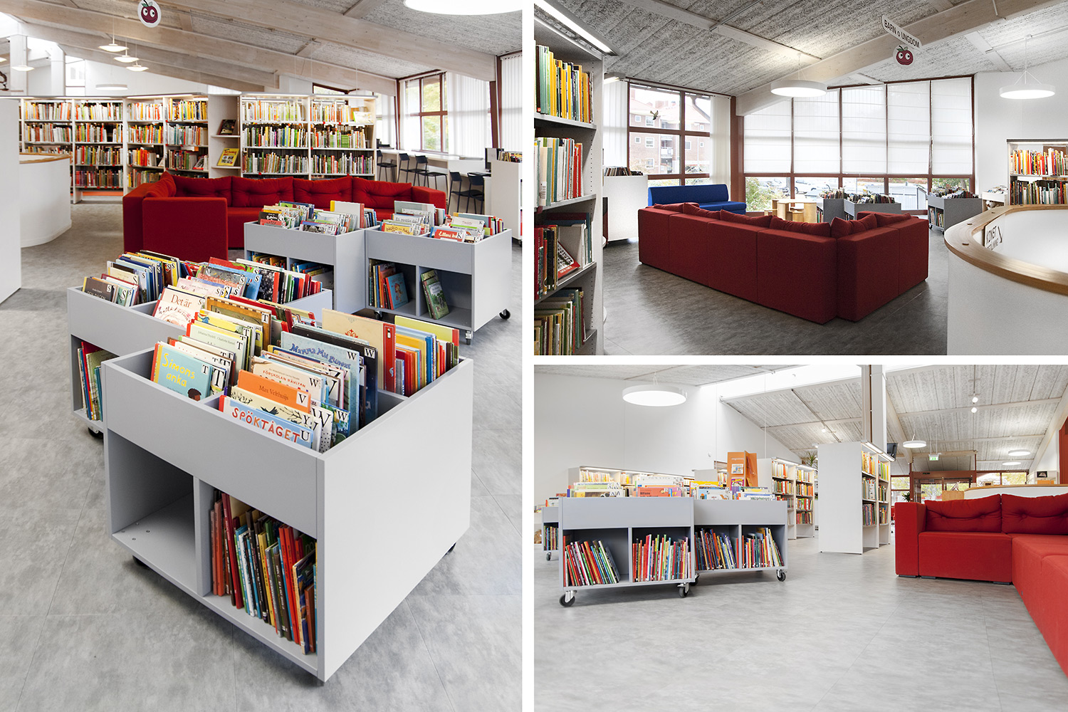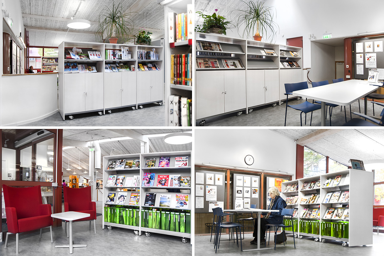De openbare bibliotheek van Kungsörs heeft haar faciliteiten, meubels en interieur bijgewerkt zodat ze voldoet aan de huidige behoeften van een moderne bibliotheek. Door middel van nieuwe vloeren, afwerking en nieuwe meubels hebben de bezoekers een bibliotheek die zowel moderne als gezellig is!