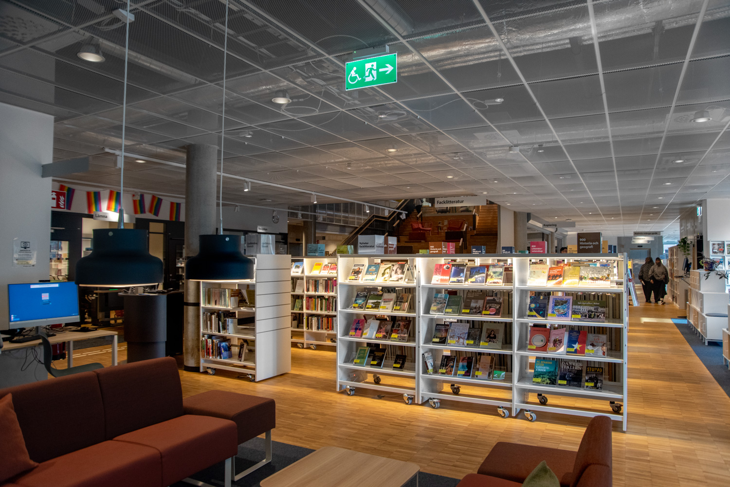 Producten die in de Openbare bibliotheek Rosengård, Malmø, Zweden gebruikt worden