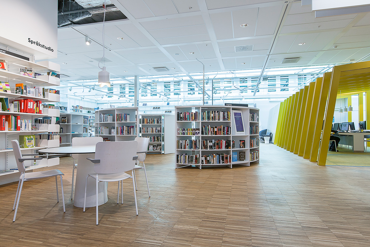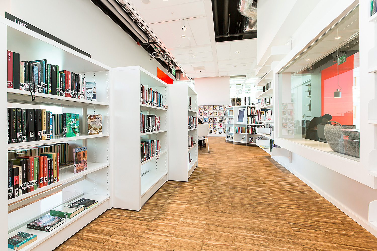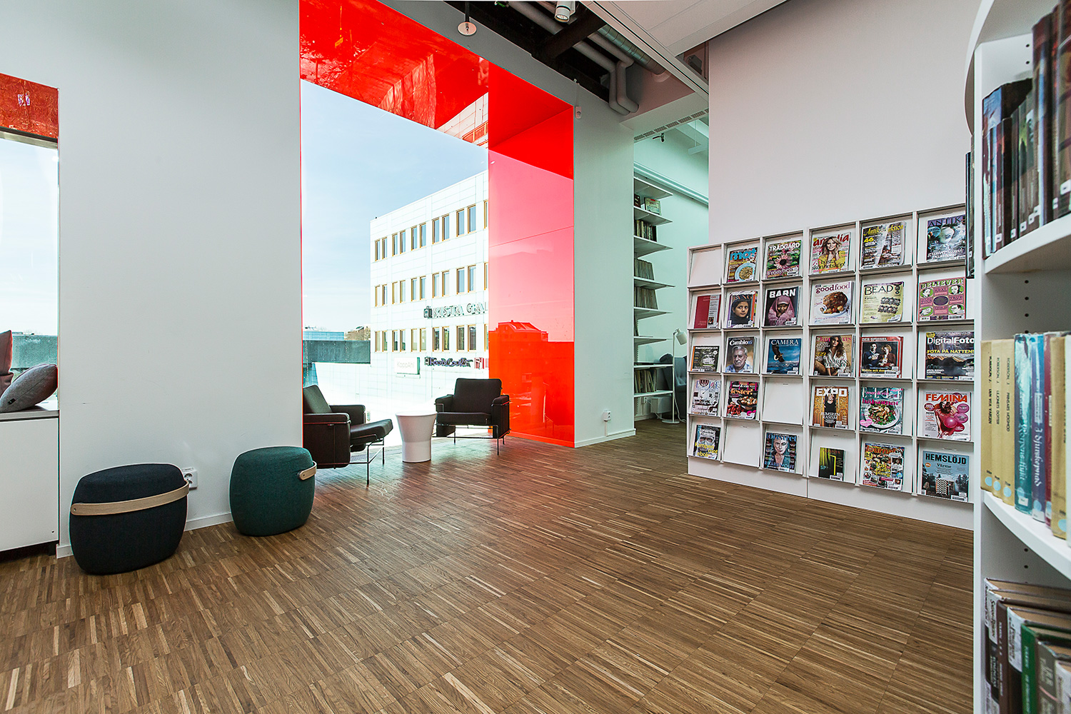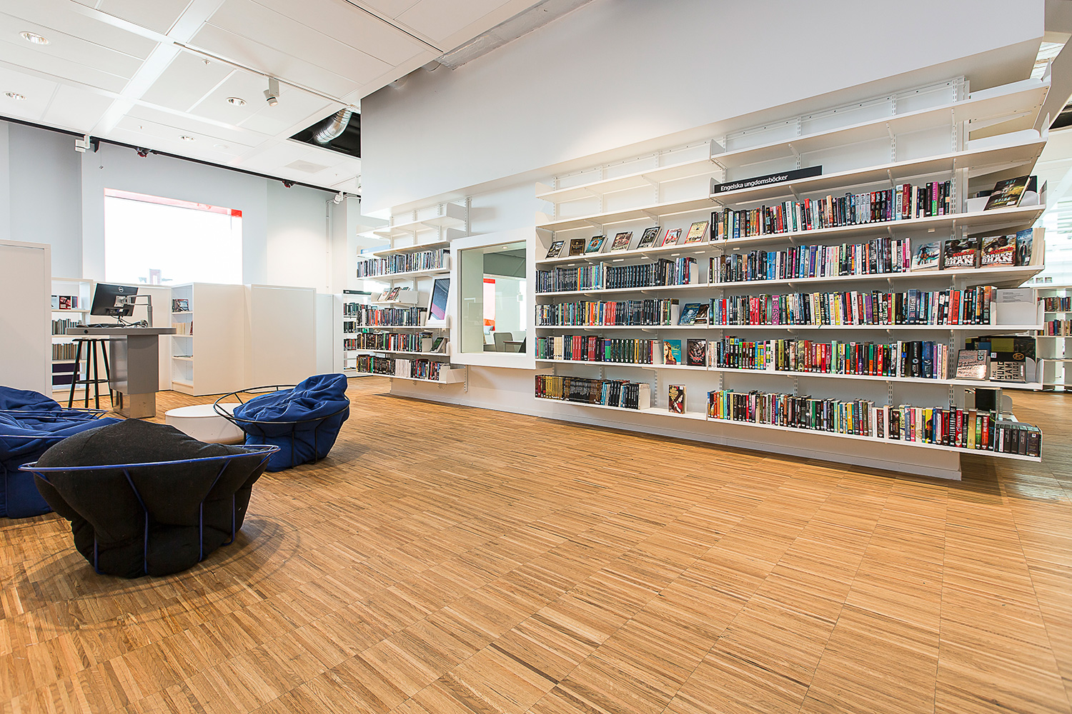 Producten die in de Openbare bibliotheek Kista, Stockholm, Zweden gebruikt worden