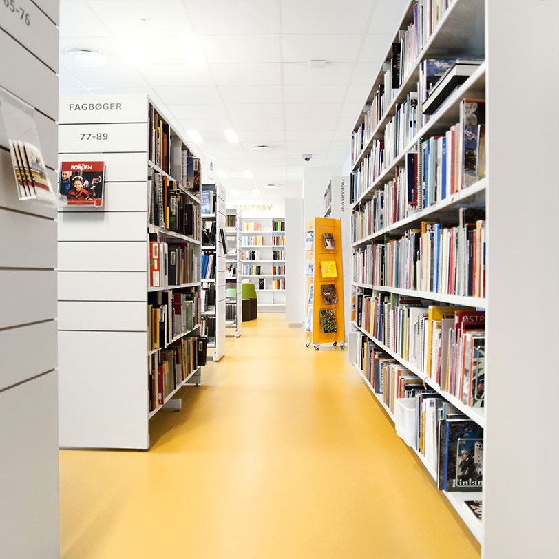 We gebruiken gelamineerd berkenmultiplex - hier met zichtbare randen - om zowel een duurzaam oppervlak als een duurzame constructie te creëren. Perfect voor de meest veeleisende bibliotheekomgevingen!