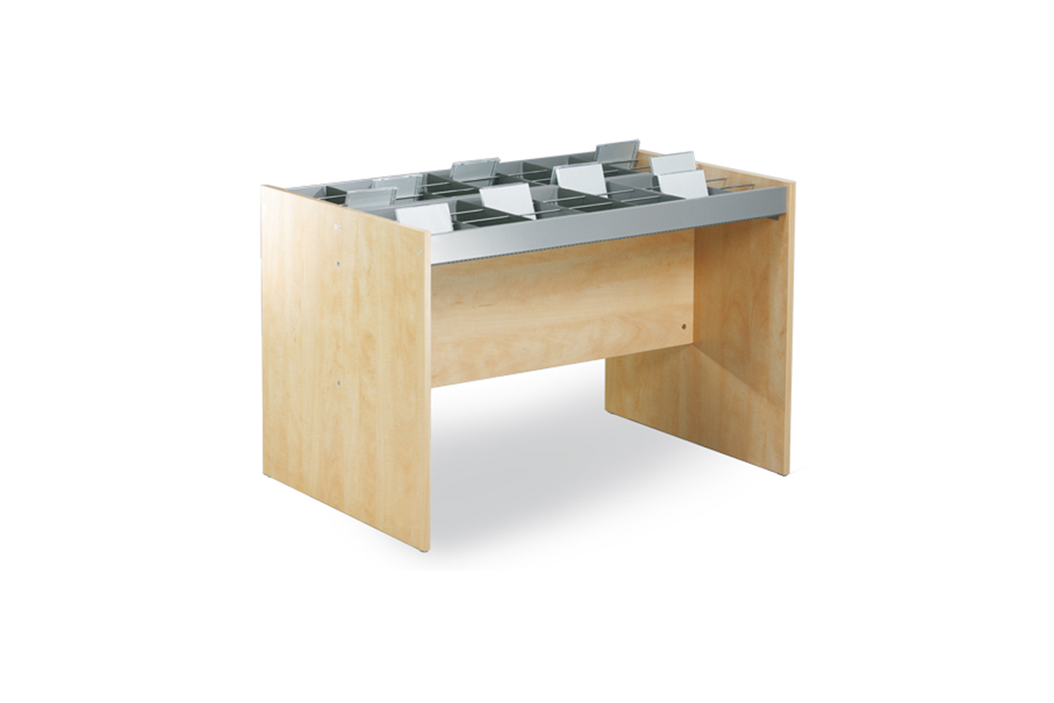 Het meubel is ook uitgerust met horizontale stangen en 6, 12 of 18 metalen verdelers afhankelijk van het model. Het bevat ook gegroefde rubber matten die de media rechtop houden.