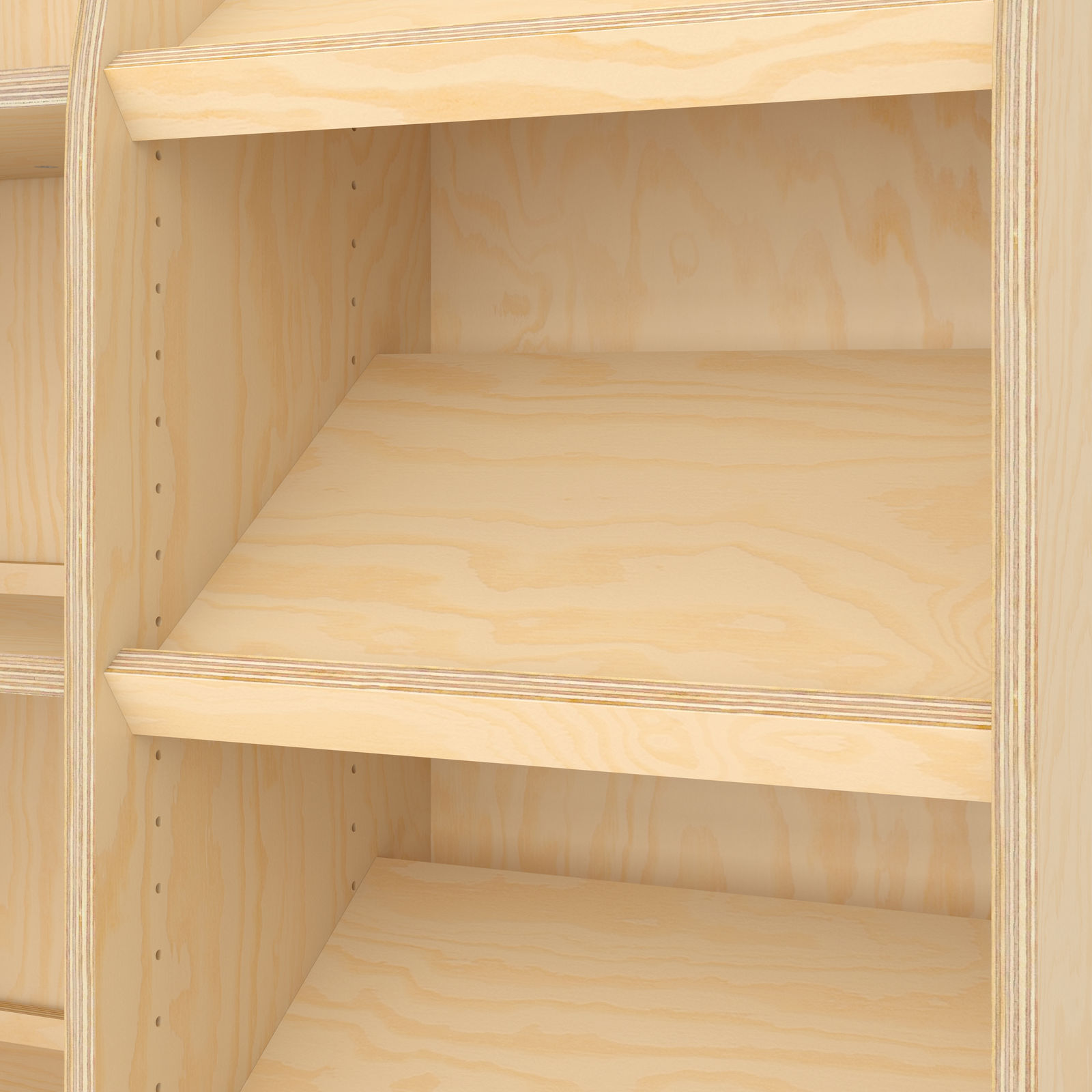 Een vlak legbord kan je makkelijk omvormen tot een presentatielegbord door eenvoudigweg de legborddragers diagonaal in het paneel te plaatsen. Het legbord is hetzelfde.