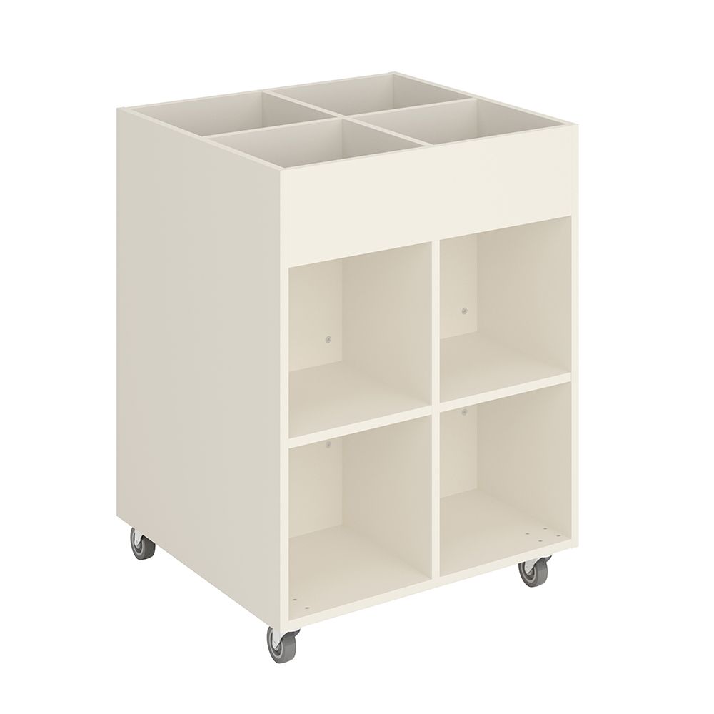 Sara Midi is een prentenboekenbak met vier displaycompartimenten bovenaan en vier opbergcompartimenten onderaan. Geschikt voor kinderen.