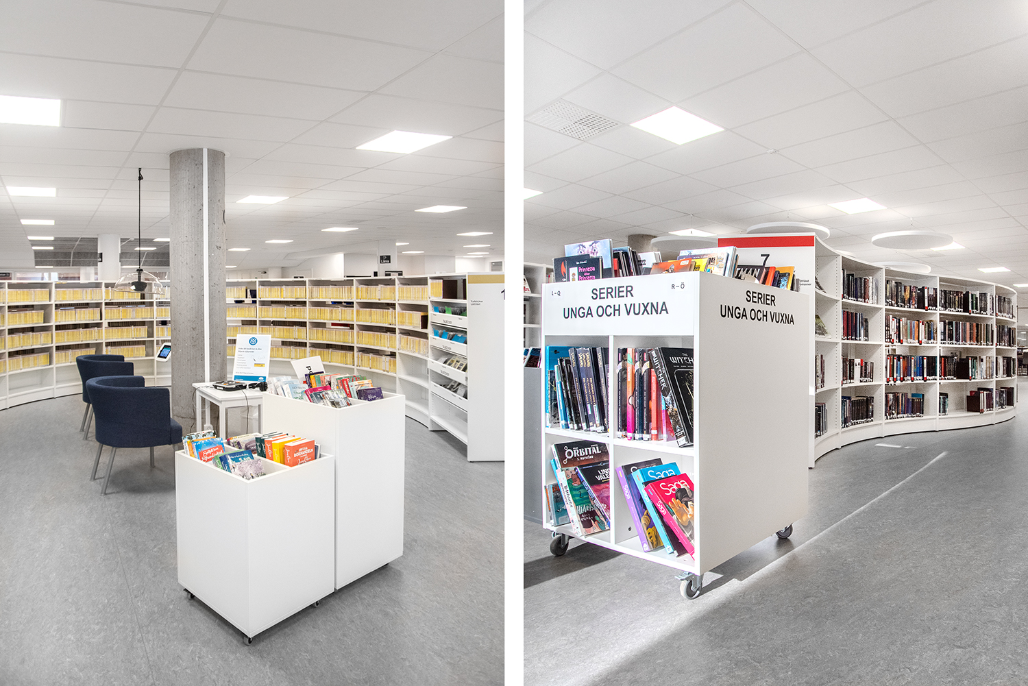 Sara is een reeks boekenbakken die beschikbaar is in zowel een vierkante als een ronde variant, in 3 verschillende hoogtes voor flexibele oplossingen in uw bibliotheekinterieur.