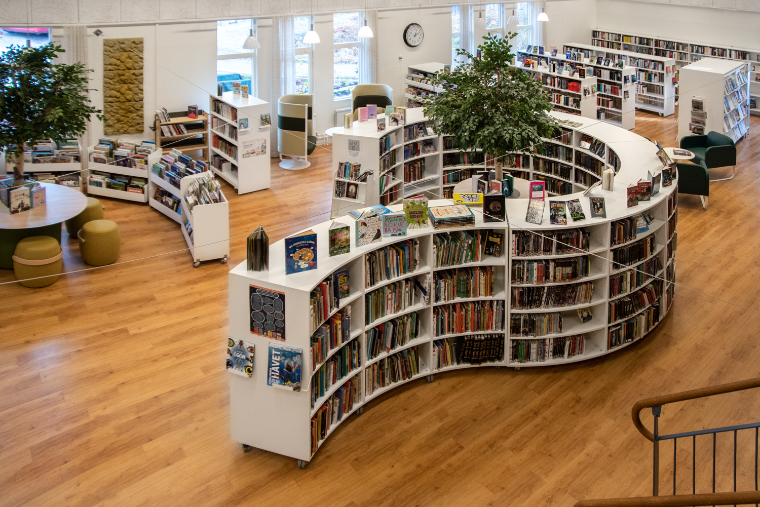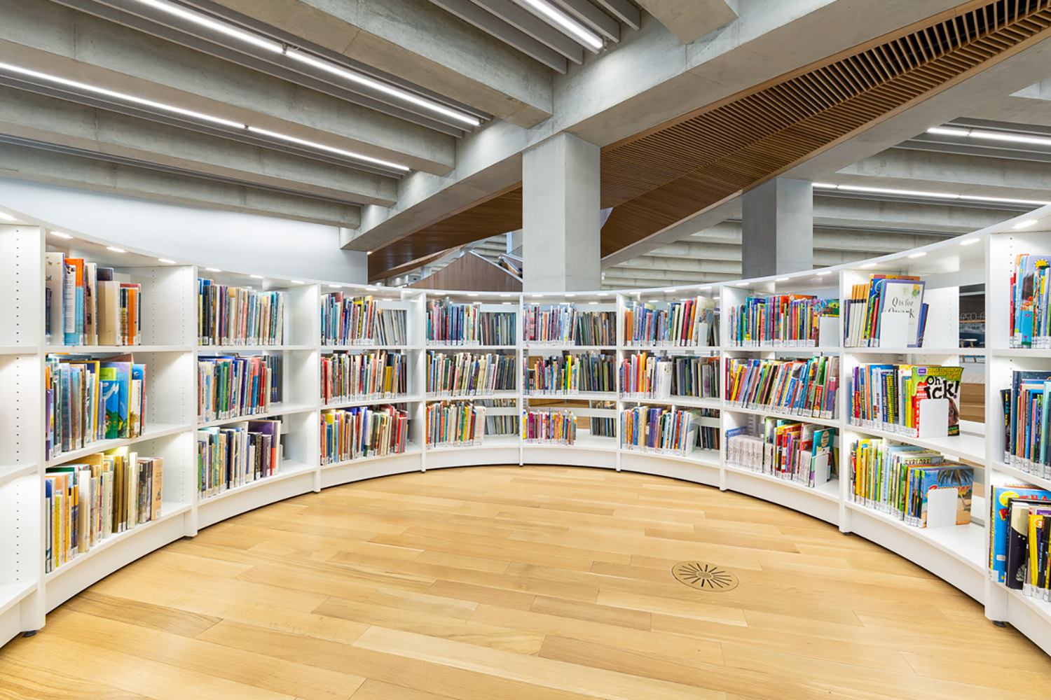 Slimline/Frontline Round is een volledig nieuw concept om boeken te presenteren en op te slaan. Creëer knusse leeshoeken of specifieke zones door bijna volledige cirkels te maken waarin de bilbiotheekbezoekers tussen de boeken kunnen snuisteren. Of gids je bezoekers verder in de bibliotheek met een golvende rekopstelling.