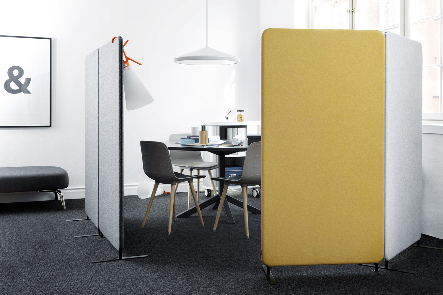 Functioneel, flexibel en geluidsabsorberend schermsysteem in modules.