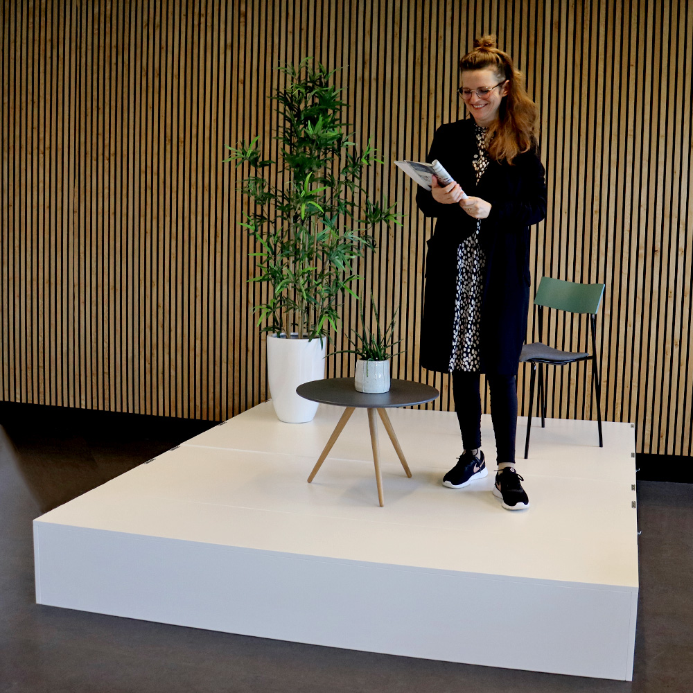 De Verona zittribune en podium combineren de tijdloze elegantie van het oude amfitheater met praktische functionaliteit. Het meubel kan dienen als podium of als zittribune met 3 verschillende hoogtes.